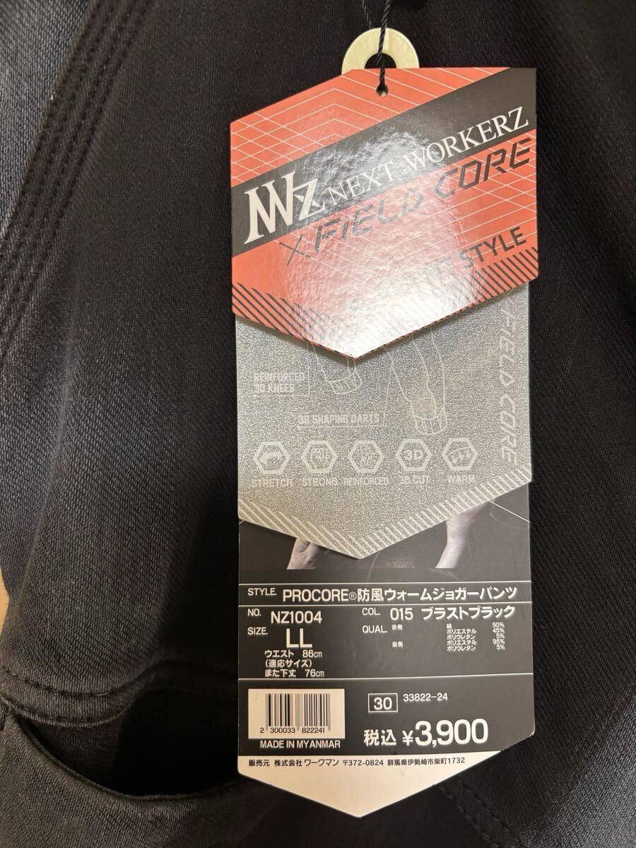 LLサイズ ワークマン PROCORE 防風 ウォーム ジョガーパンツ ブラストブラック
