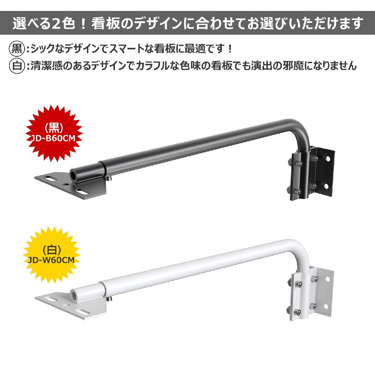 ★オススメポイント★ 投光器・看板照明用アームです。 取付ける灯具の質量は10kg迄で、また様々な方向で設置可能です。 静荷重試験による検証が実施済みです。 最大「風力階級12」相当の57m/s風速に耐えられますので、安心・安全に使用できます。 ※静荷重試験とは、一定荷重あるいは一定変形毎に加力を止め各部のひずみや変形の度合いを測定するものです。 優れた材質を採用 優れた鋳鉄材を採用し、高強度を実現しました。 さらに塗装加工で、耐腐食性能を高め、錆びにくいですので、屋外でのご利用にもおすすめです。 様々な設置方向適応可能です。 アームを様々な方向に設置できるため、施工条件に合わせた取付方法が選択できます。 電源線収納可能 アームの中に投光器の電源線を通し、電源コードをスッキリ収納できます。 ※灯具取付金具の直径はΦ20mmです。 様々なシチュエーションで使えます。 ・屋内外のサインボード、店舗の看板、広告看板、壁面看板、広告壁などの看板照明用。 ・展示会場・施設・建物の景観維持にもおススメです。 △ご注意△ 必ず垂直な壁面につりつけて使用してください。 特に灯具側が下がった状態で使用すると、灯具内に浸水してしまう可能性があります。 アームの施工は市販のワイヤーで補強してください。