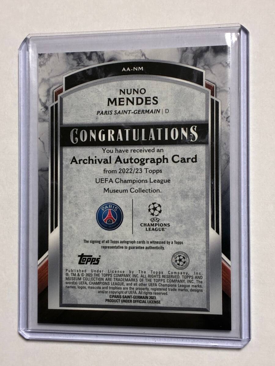2022-23 Topps Museum Collection UEFA Champions League Archival Autographs Nuno Mendes /99 ヌーノ・メンデス 直筆サインカード