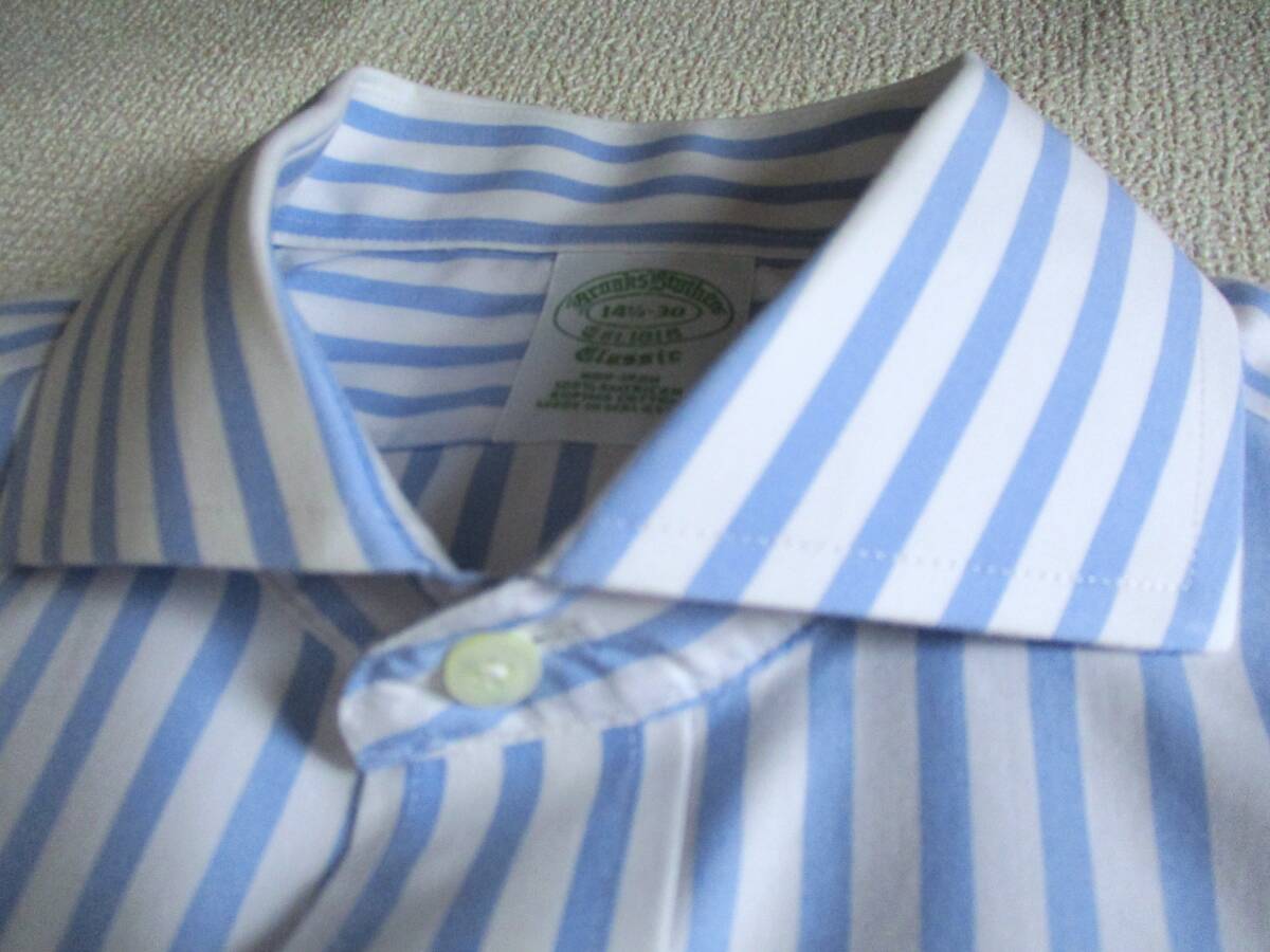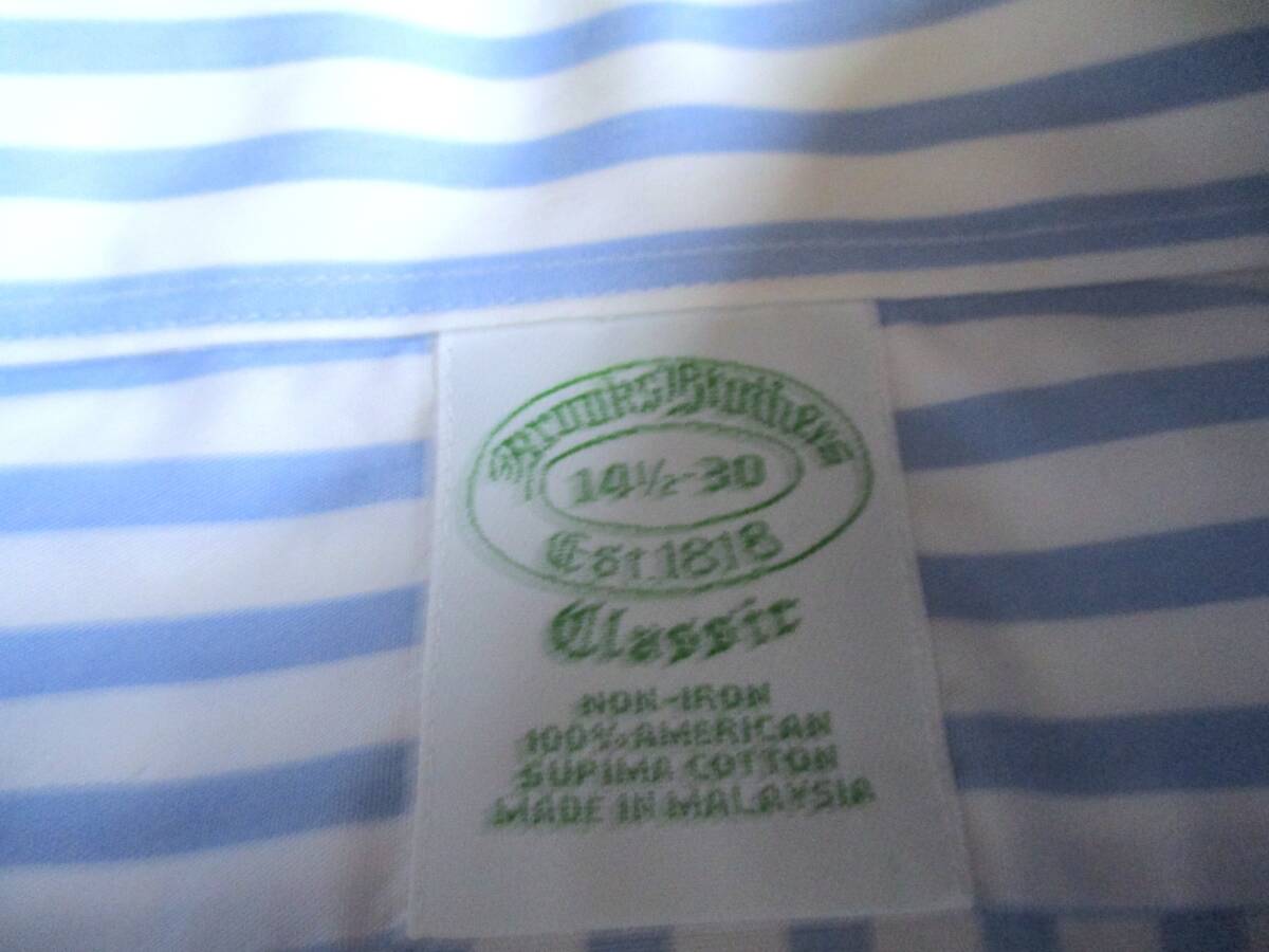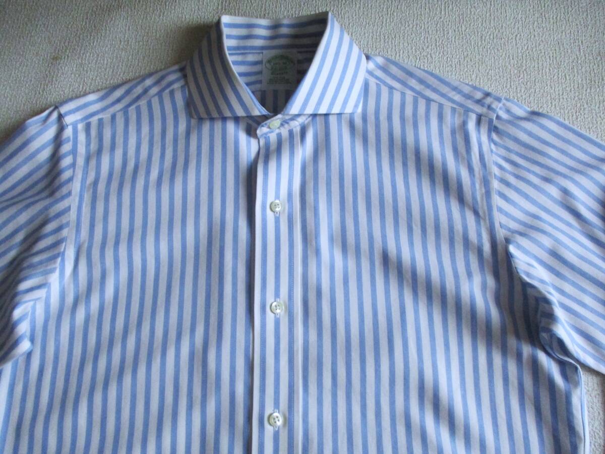 美品★ 14.5 ブルックスブラザーズ★ 長袖ストライプドレスシャツ★ 白×薄青 NON-IRON