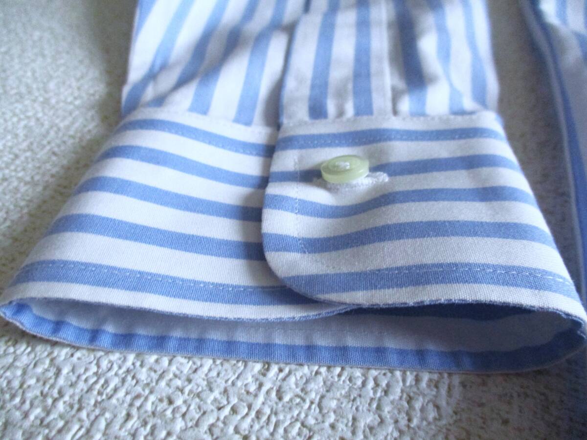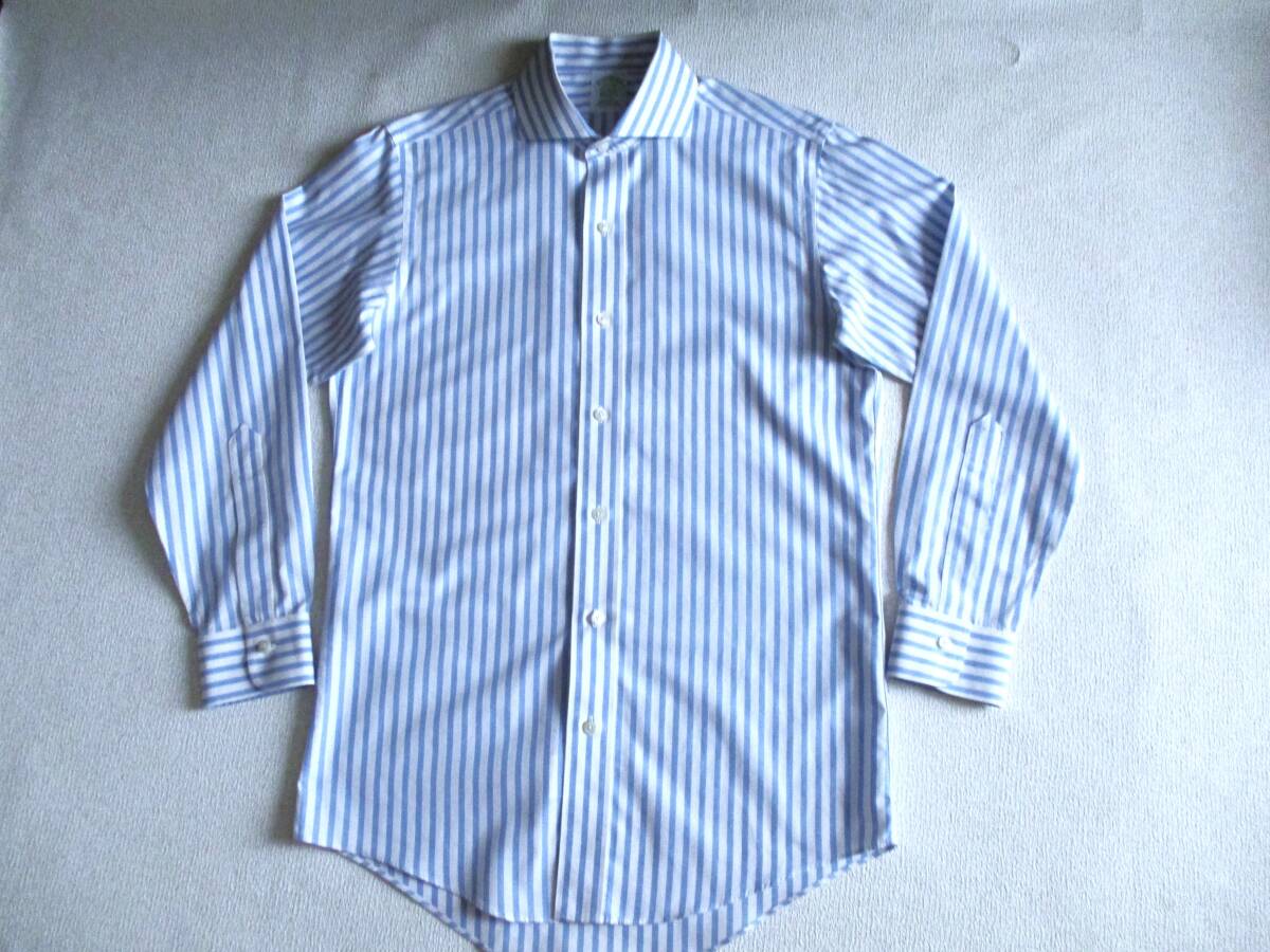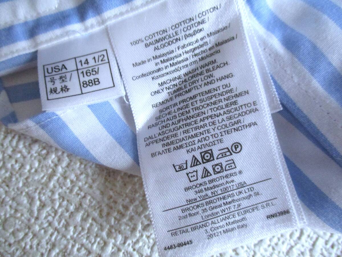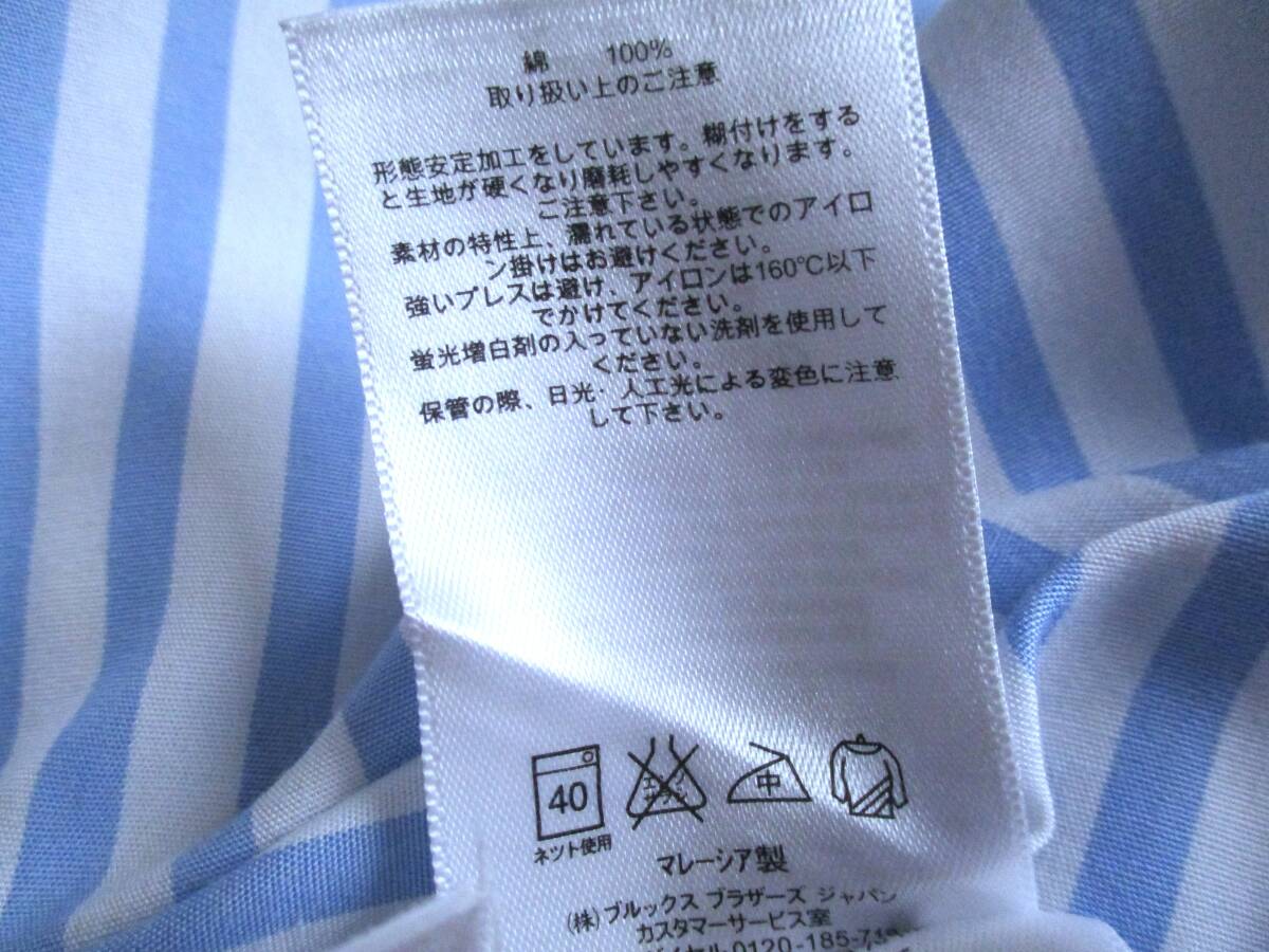美品★ 14.5 ブルックスブラザーズ★ 長袖ストライプドレスシャツ★ 白×薄青 NON-IRON