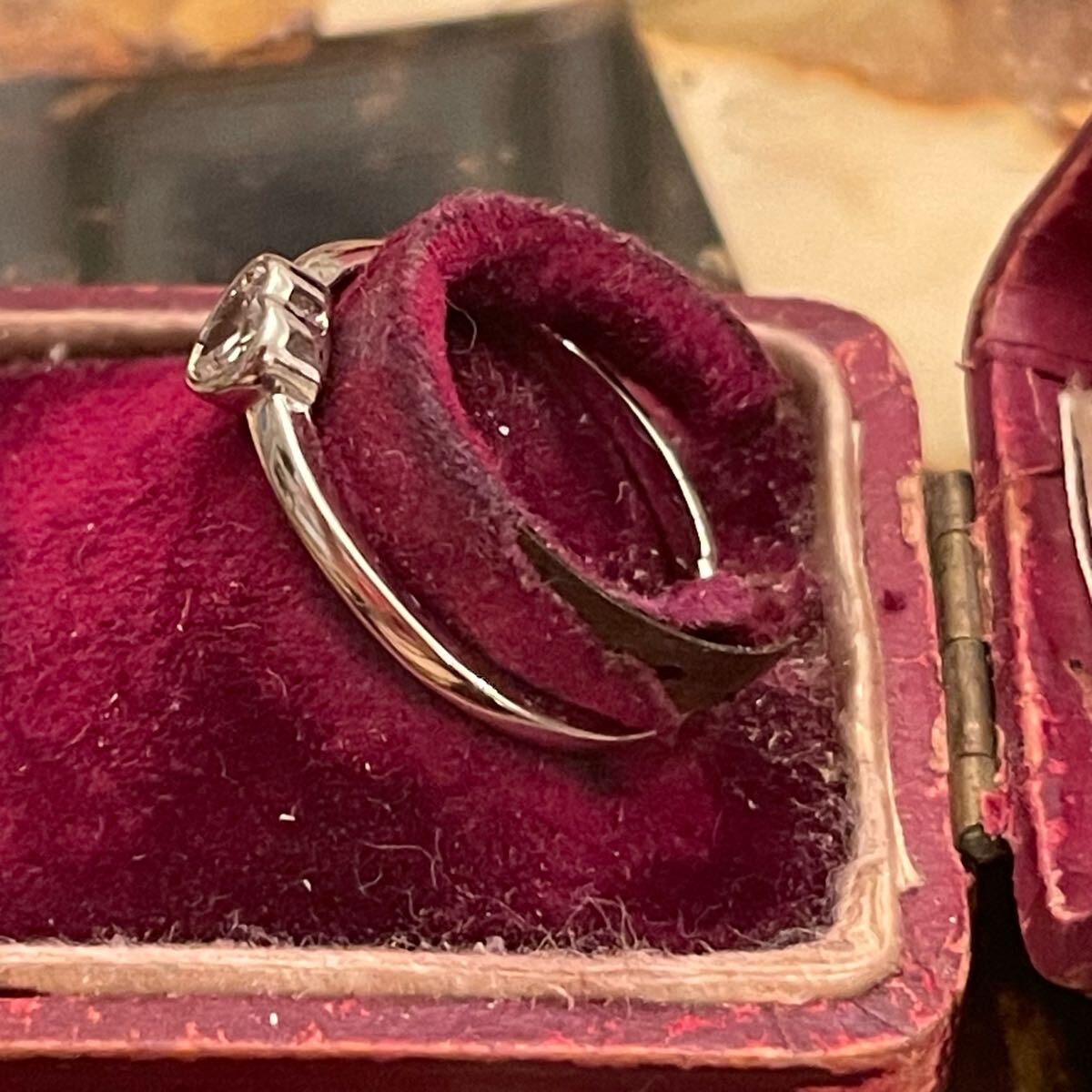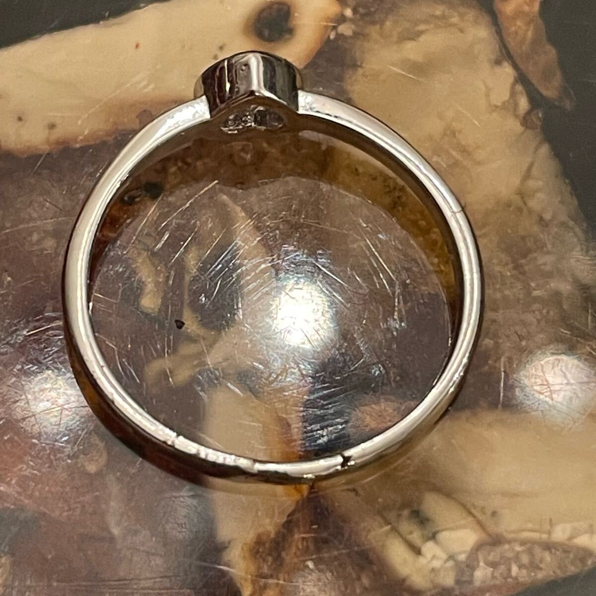 金属部分は素材不明。刻印無し。石はラインストーン。日本サイズで13号です。