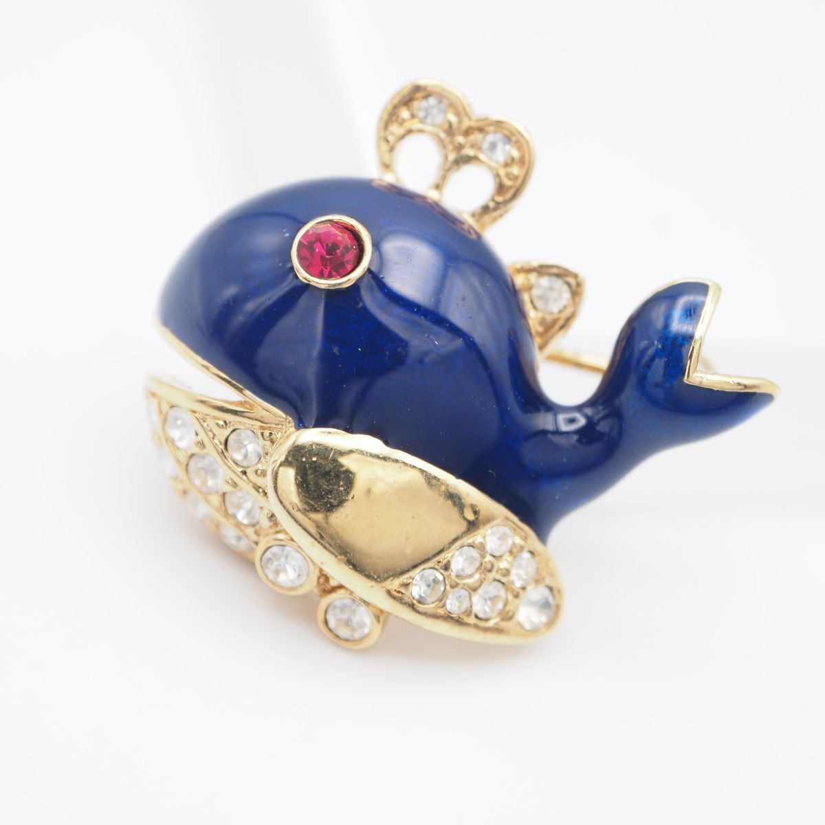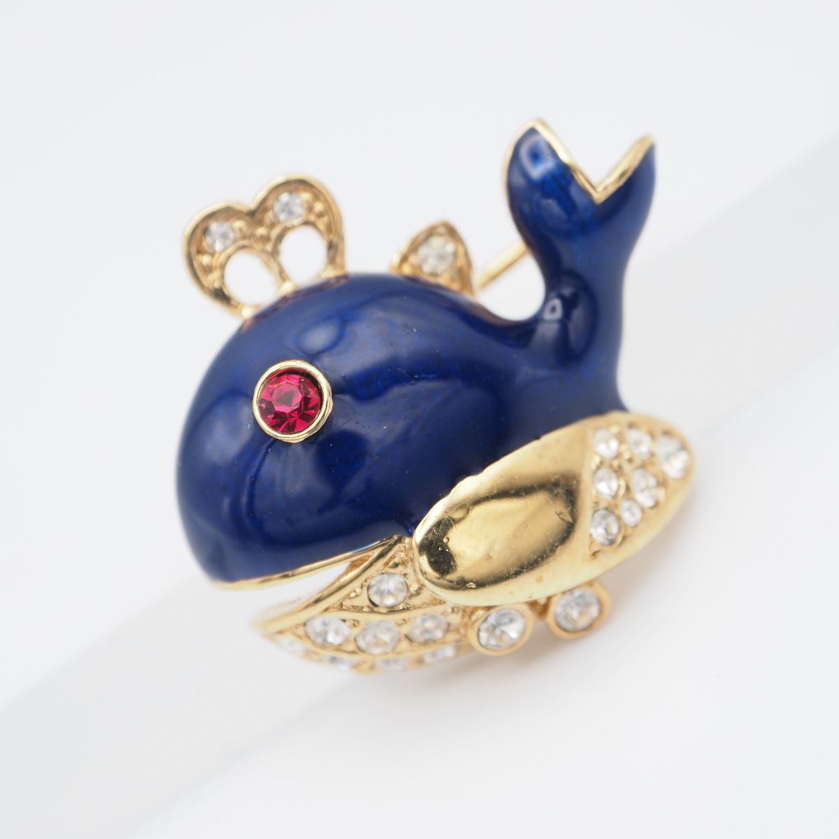 G237 A&S Attwood and Sawyer アトウッド&ソーヤー ブローチ 鯨 ホエール ラインストーン ゴールド デザイン コスチュームジュエリー