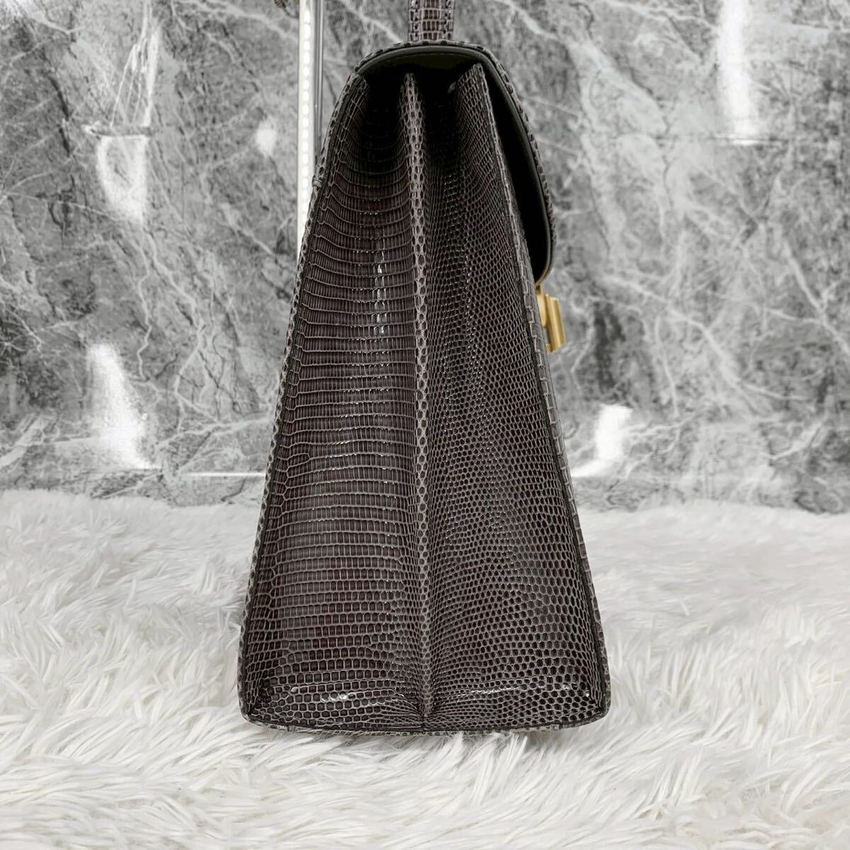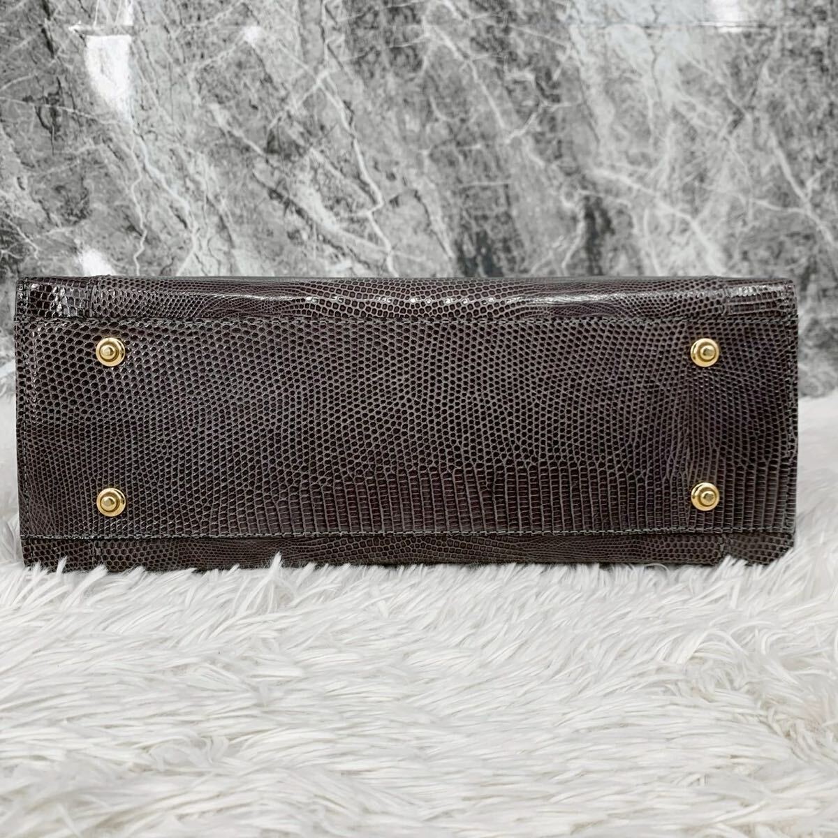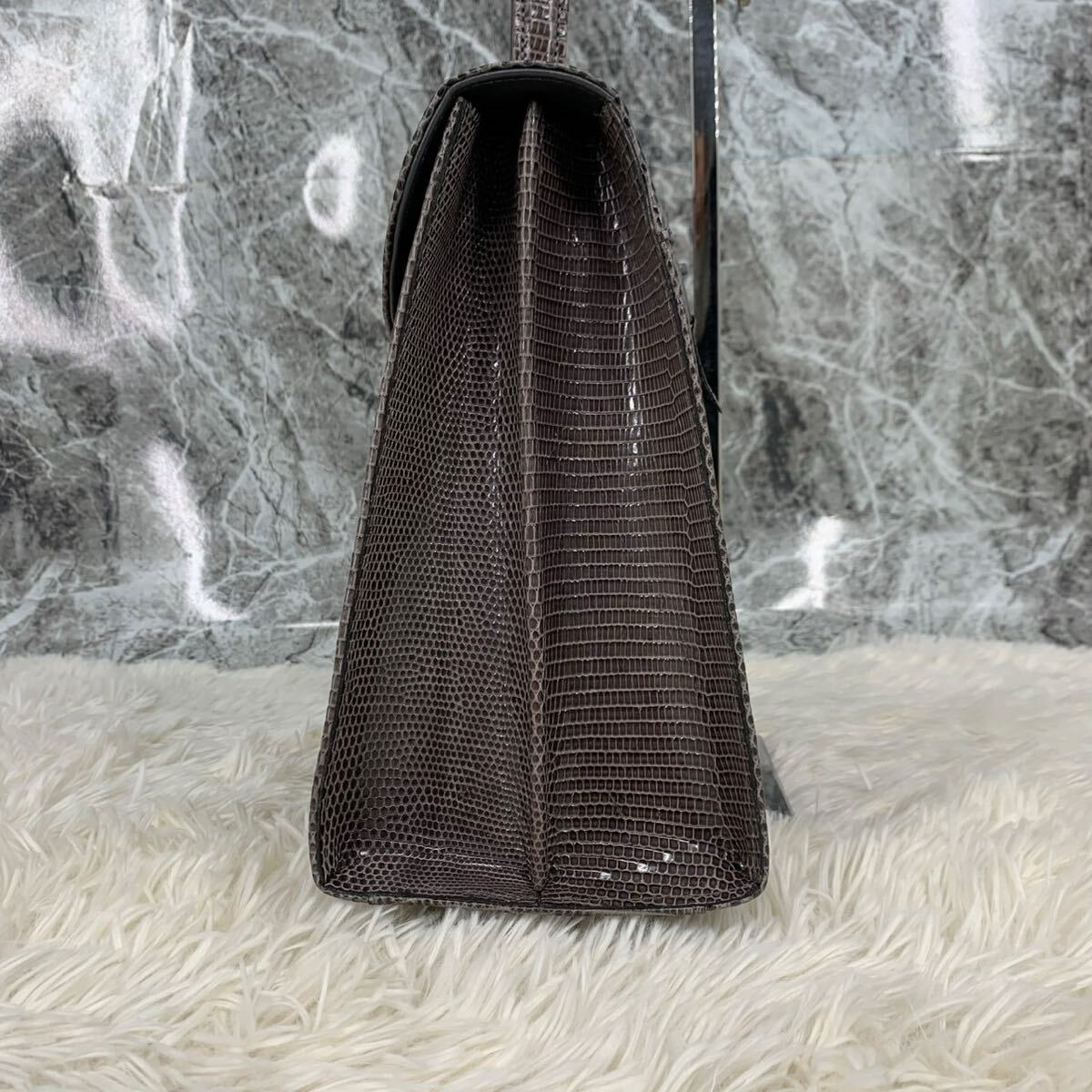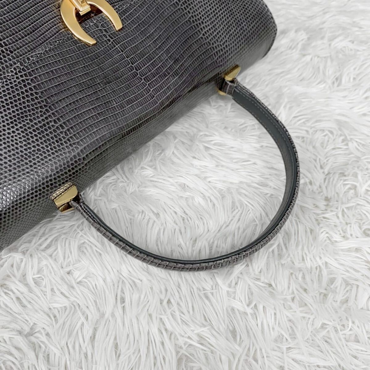 【美品 超希少】リアル リザードレザー ハンドバッグ トップハンドル レア ゴールド金具 エキゾチック センター取り フォーマル グレー