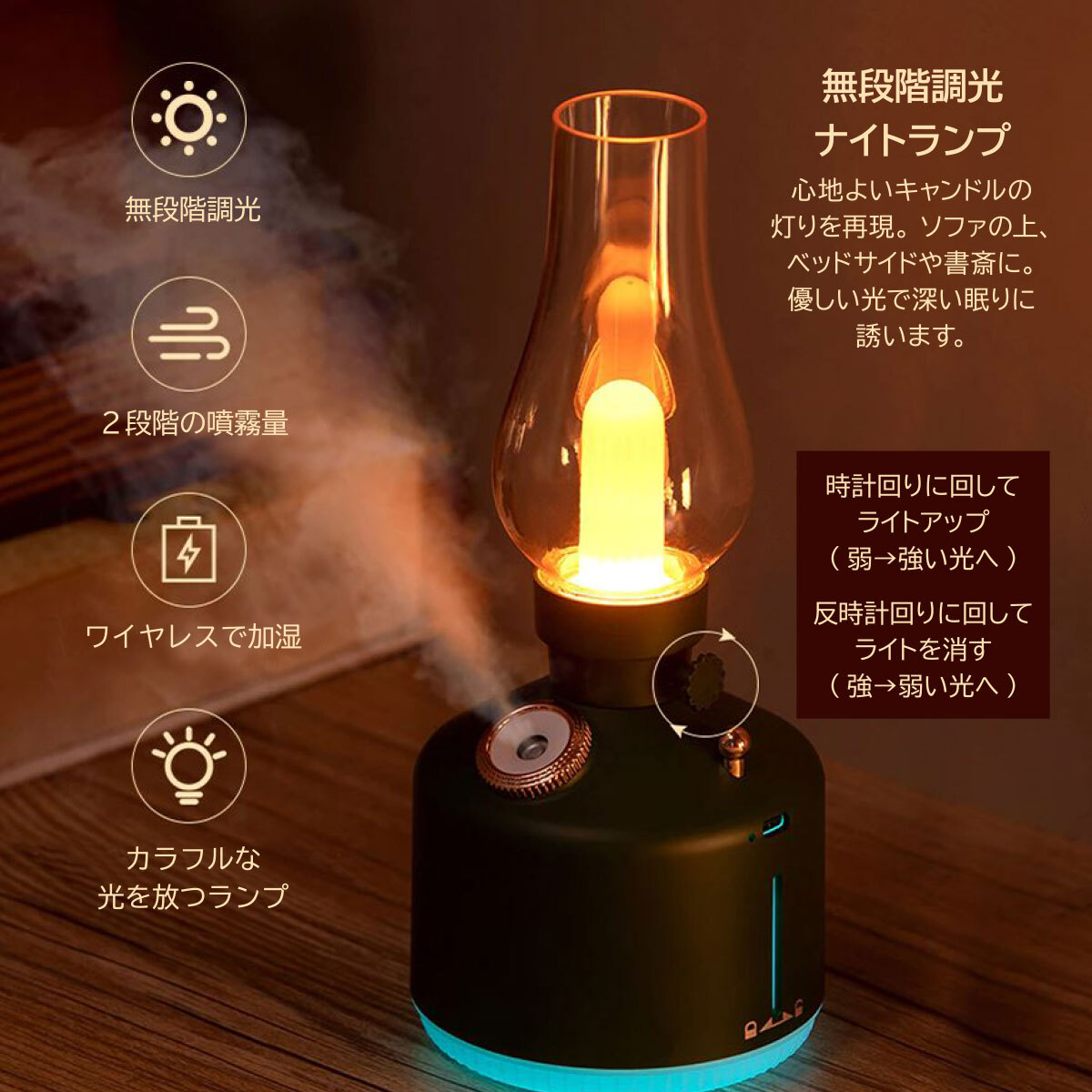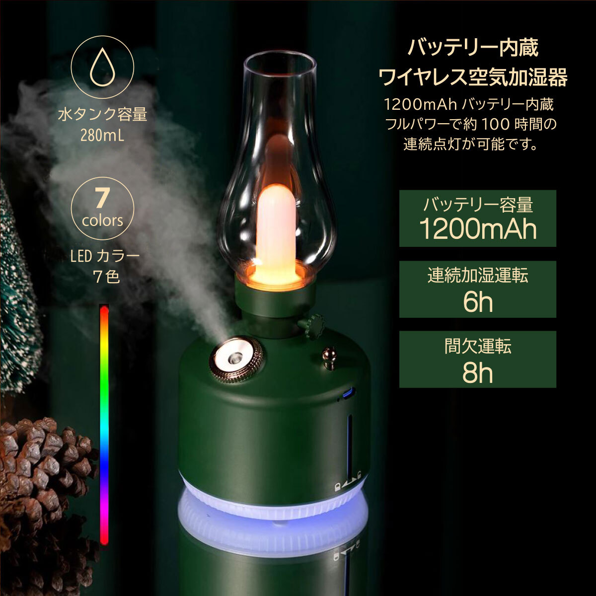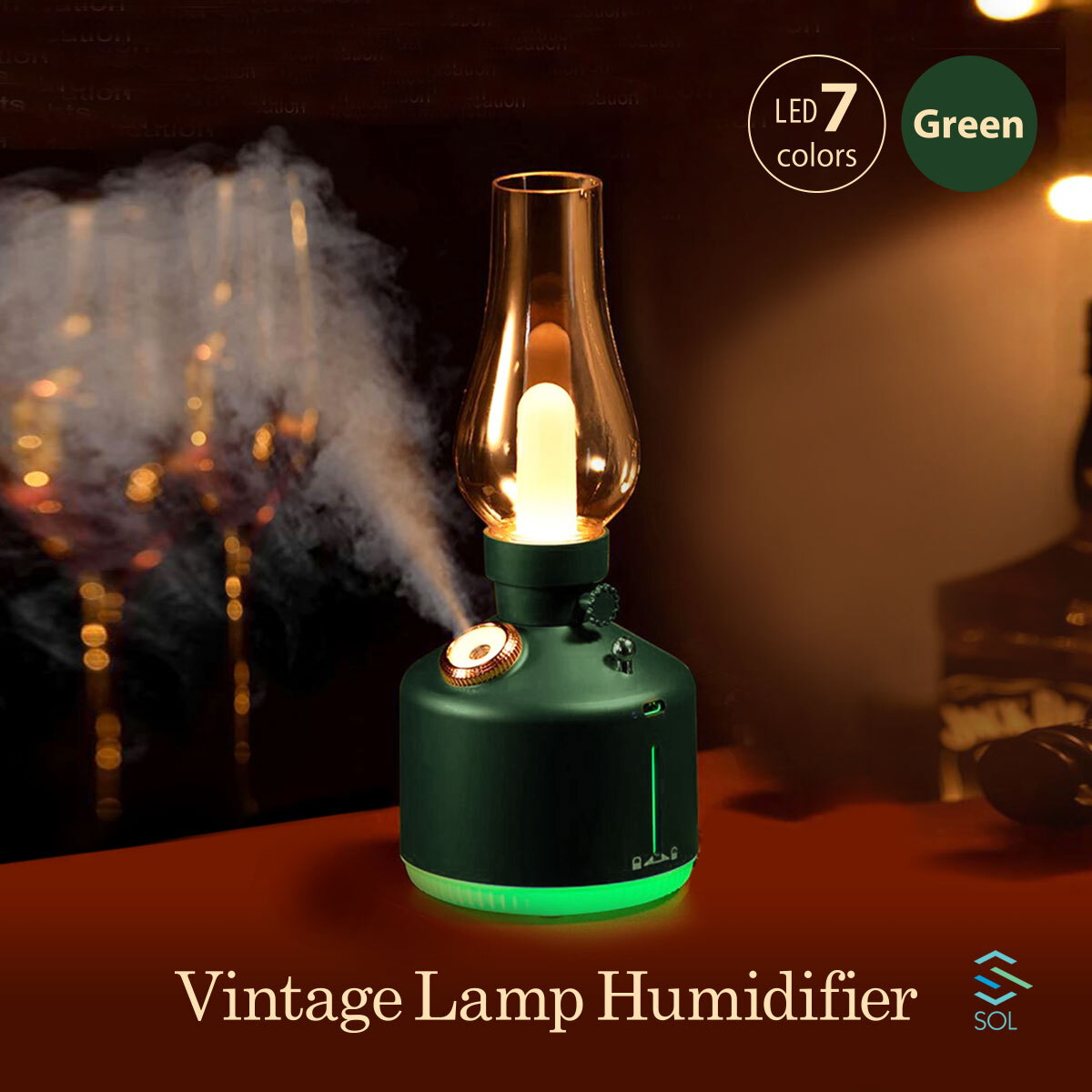 充電式加湿器 USB充電 ヴィンテージランプ アロマディフューザー エッセンシャルオイル コードレス LEDランプ 小型 グリーン 出荷締切18時