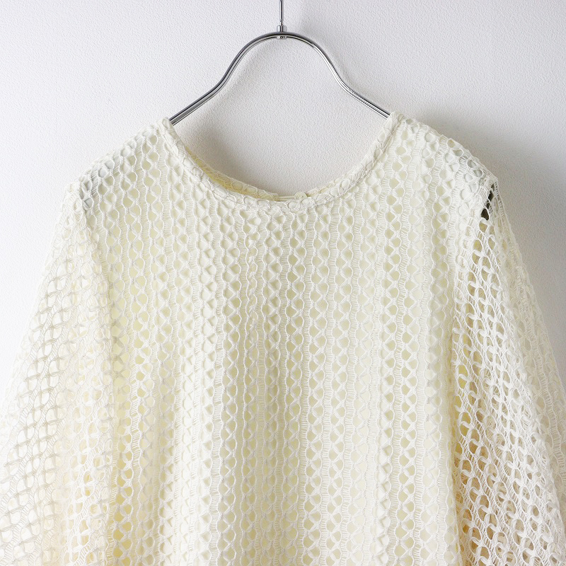 美品 2024SS ローズバッド ROSE BUD レースボリュームワンピース F/オフホワイト シアー トップス プルオーバー【2400014113686】