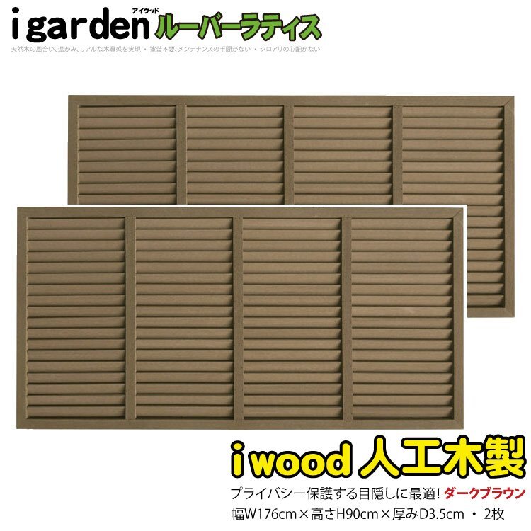 igarden 人工木 ルーバーラティス 2枚セット H900×W1760 ダークブラウン 樹脂 目隠し 日よけ 換気 仕切り 採光 境界 フェンス 10408db