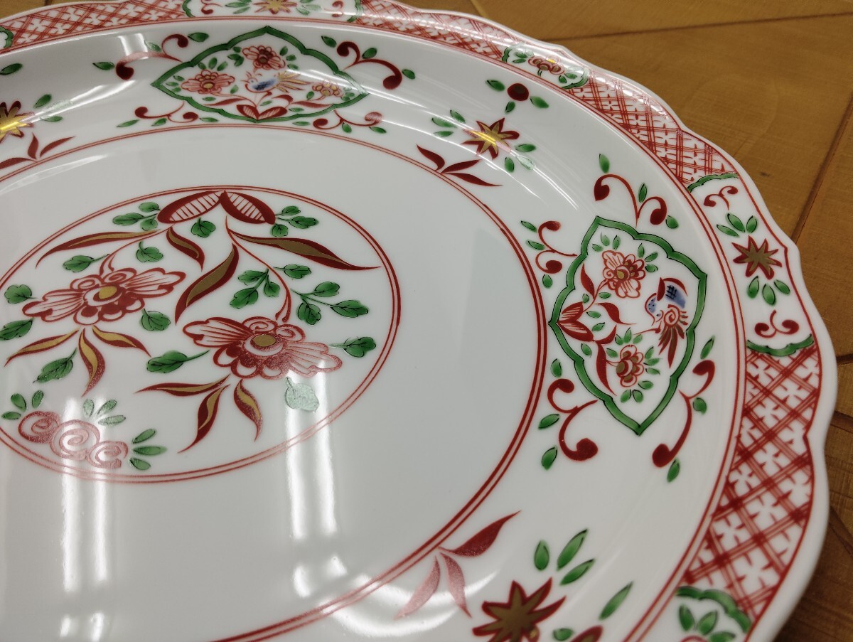 ★たち吉 橘吉 赤絵輪花 大皿★30センチ★
