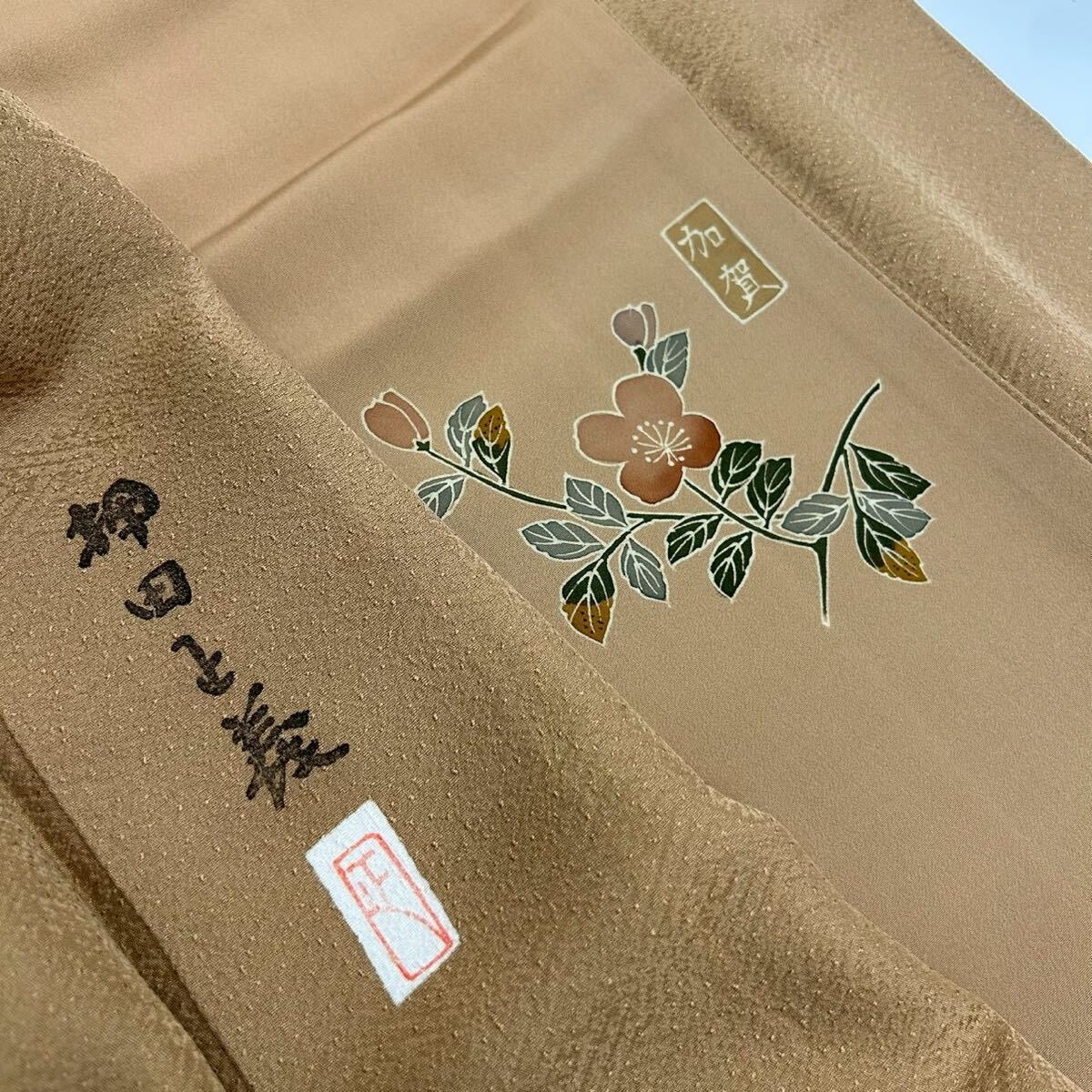本加賀友禅作家 押田正義 色無地 美しい地紋 着物 正絹 一つ紋 着物 正絹 W-4872