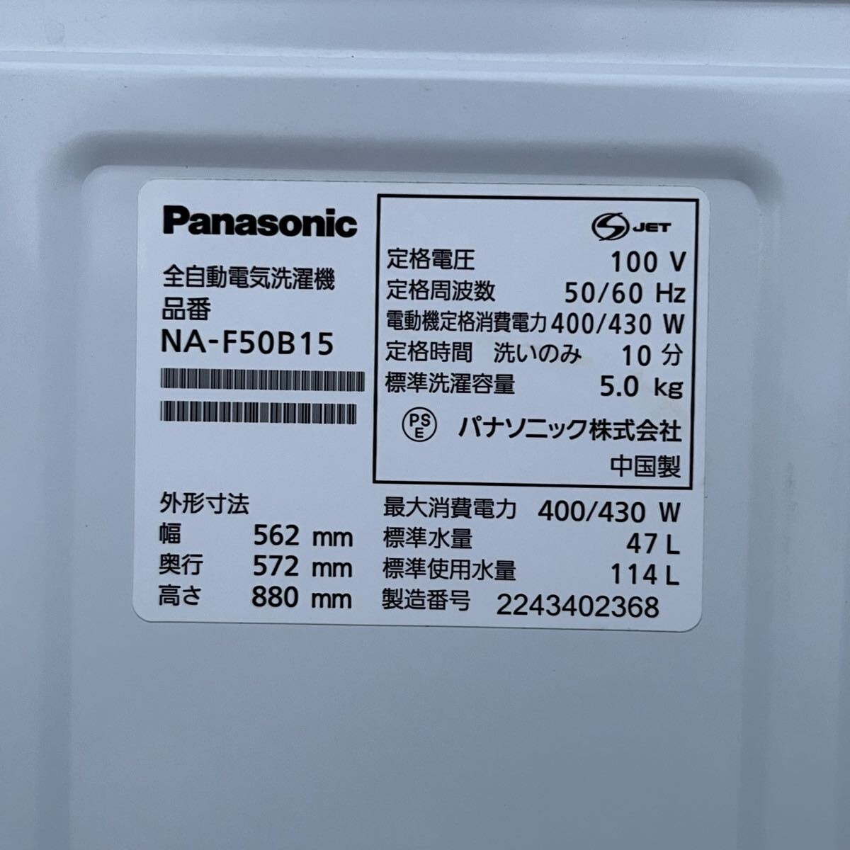 S ☆動作確認済み☆ Panasonic パナソニック 全自動電気洗濯機 NA-F50B15 2022年製 5kg ビッグウェーブ洗浄 縦型 簡易清掃済み