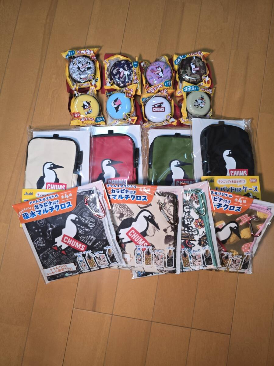 非売品 CHUMS チャムス 「カラビナ付き吸水クロス」全4種「アームバンド付ケース」全4種「マルチ缶ケース」全8種SET