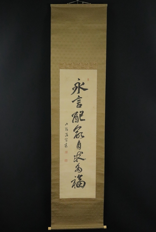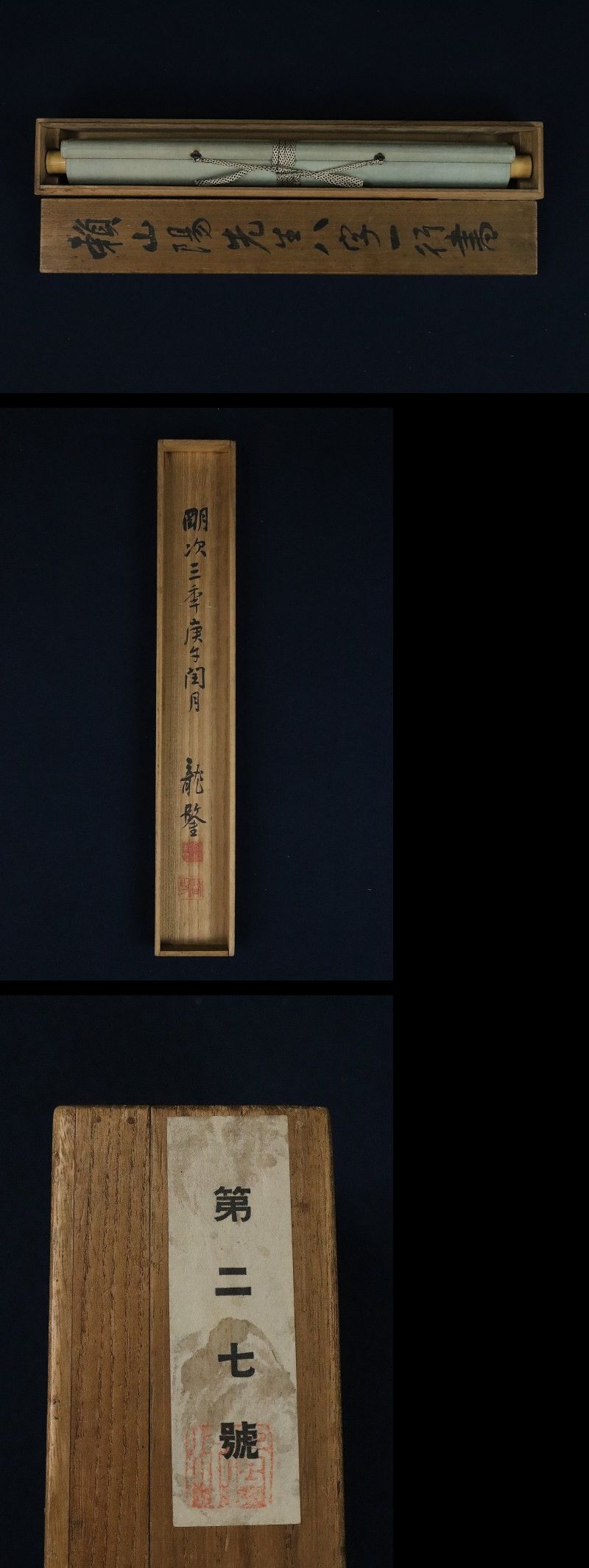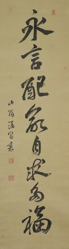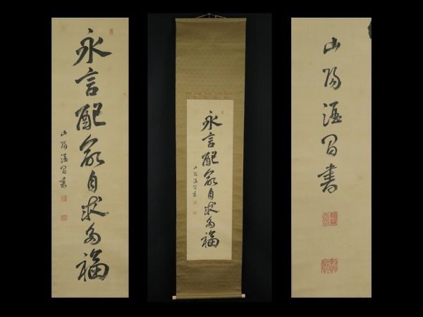 11341■【真作】頼山陽 書 「永言配命自求多福」 絹本 肉筆 宮原易安極箱 頼潔極書 蔵番シール有 掛軸