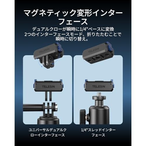 TELESIN DJI Osmo Action用 磁気アダプターマウント 1/4ネジ穴付き クイックリリースマウント DJI Action 5 Pro/4/3アクセサリーに対応 防滑シリコンゴム 衝撃吸収 軽量