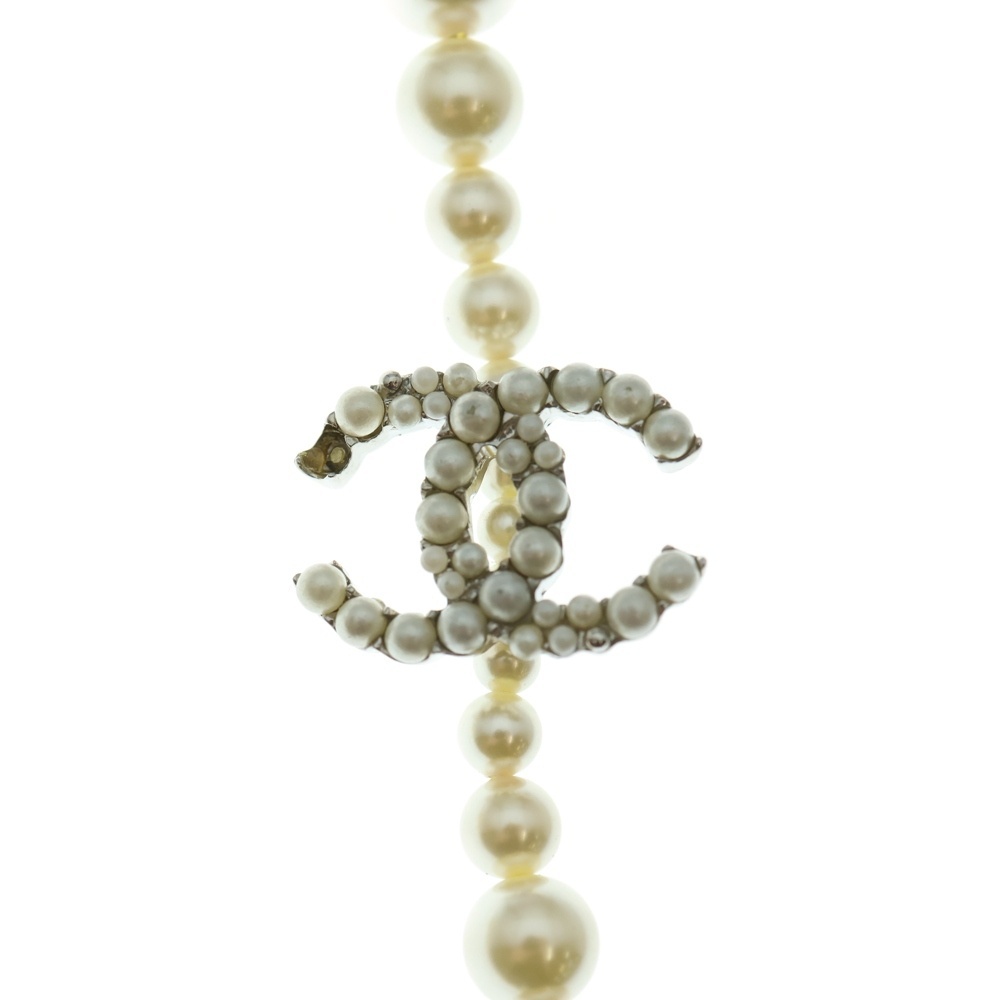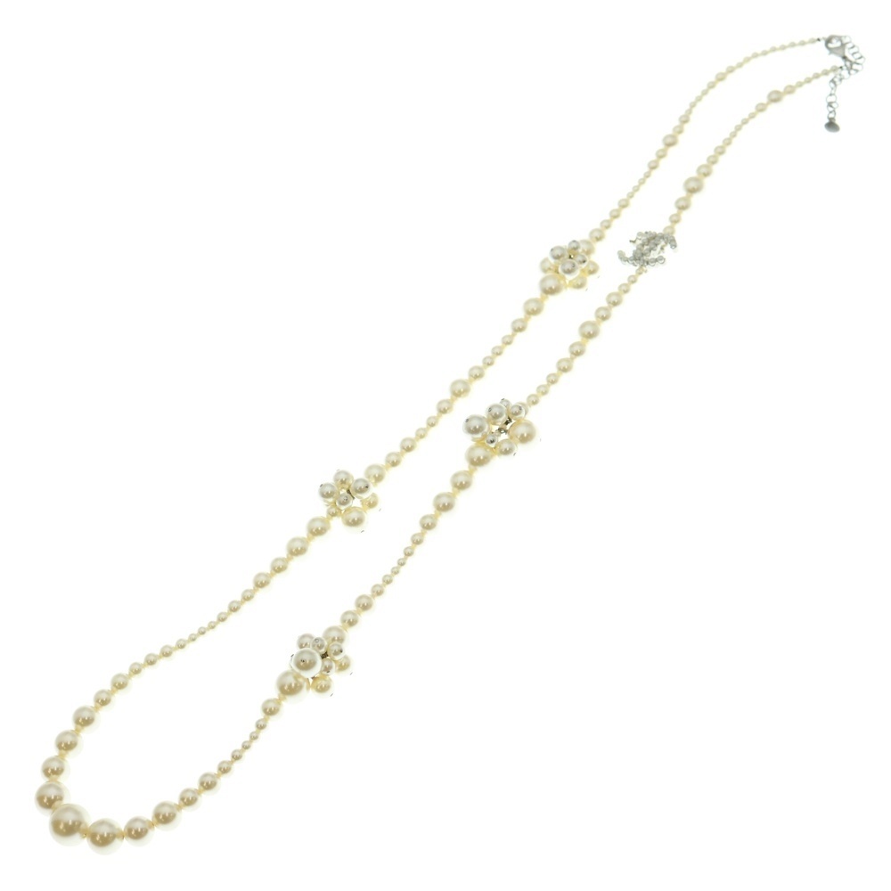 CHANEL シャネル ココマーク ラインストーン ホワイトパール ロング ネックレス ホワイト