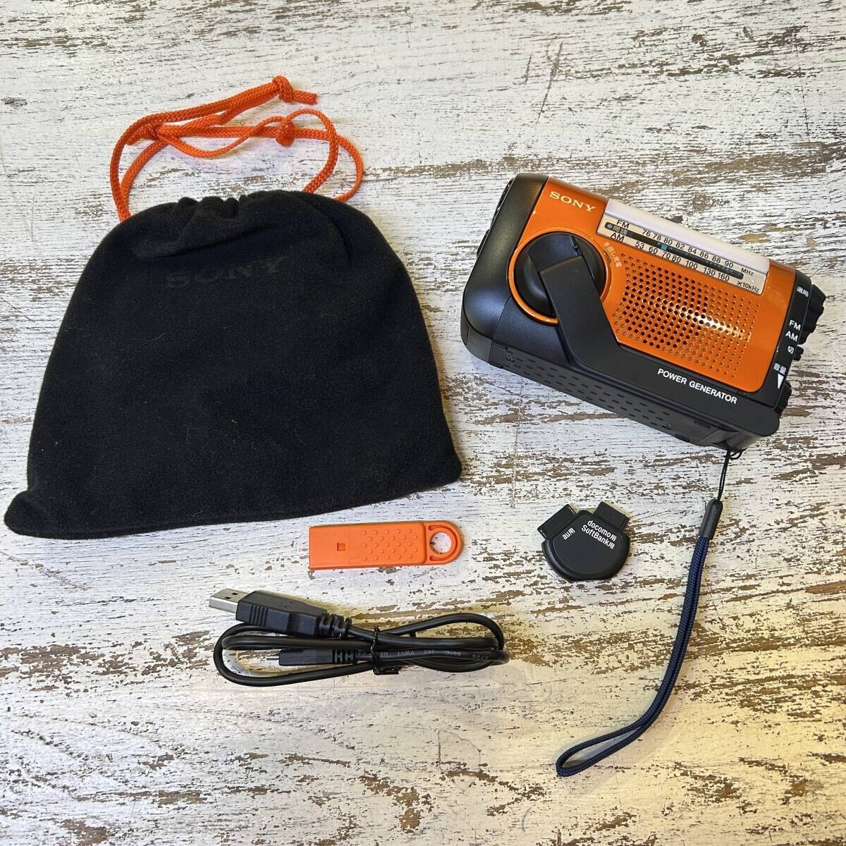 SONY / ソニー 防災グッズ ラジカセ FM AM ワイドFM対応 手回し充電対応 オレンジ ポータブルラジオ ライト USED