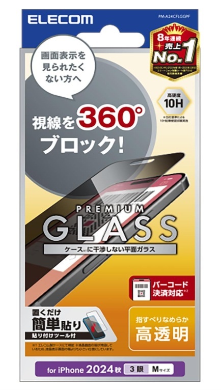 エレコム iPhone 16 Pro ガラスフィルム 強化ガラスのぞき見防止 360°