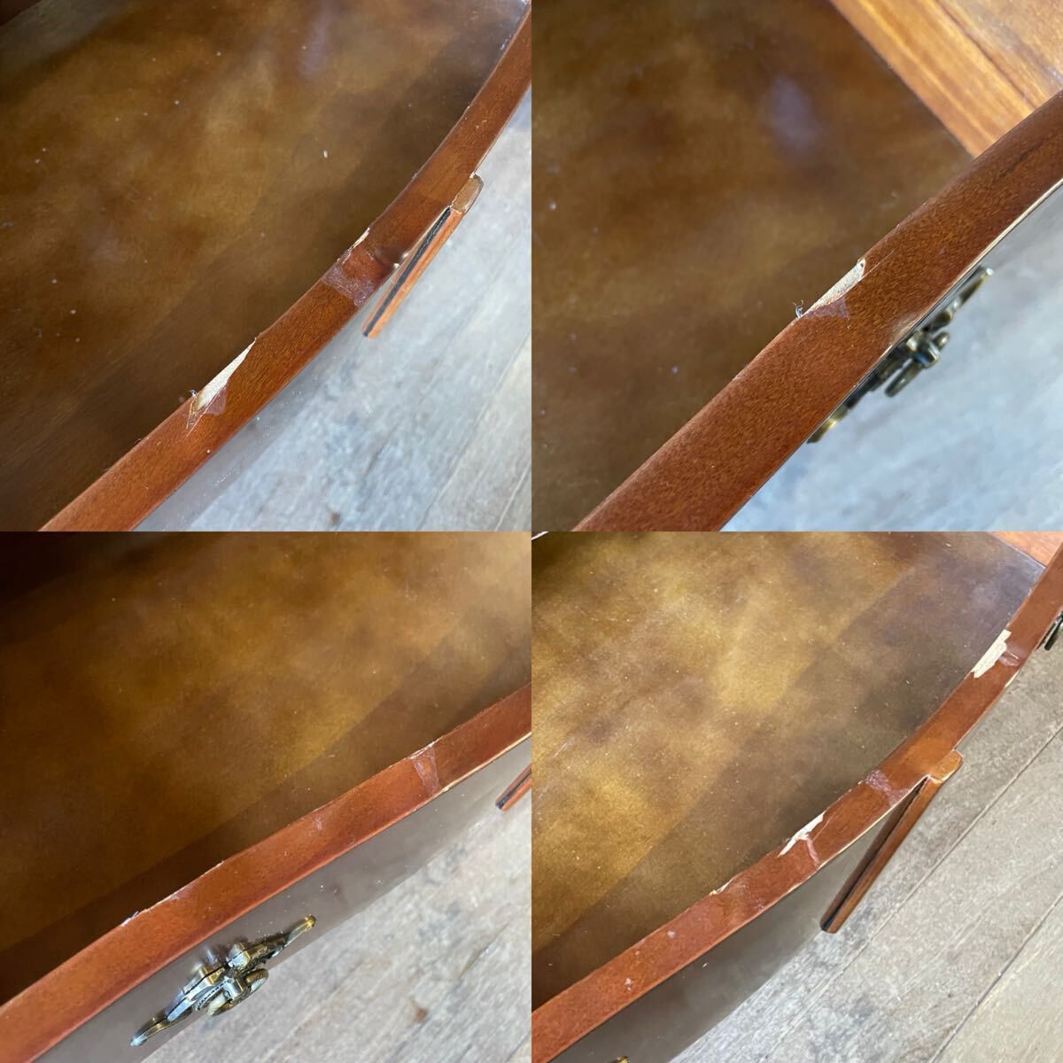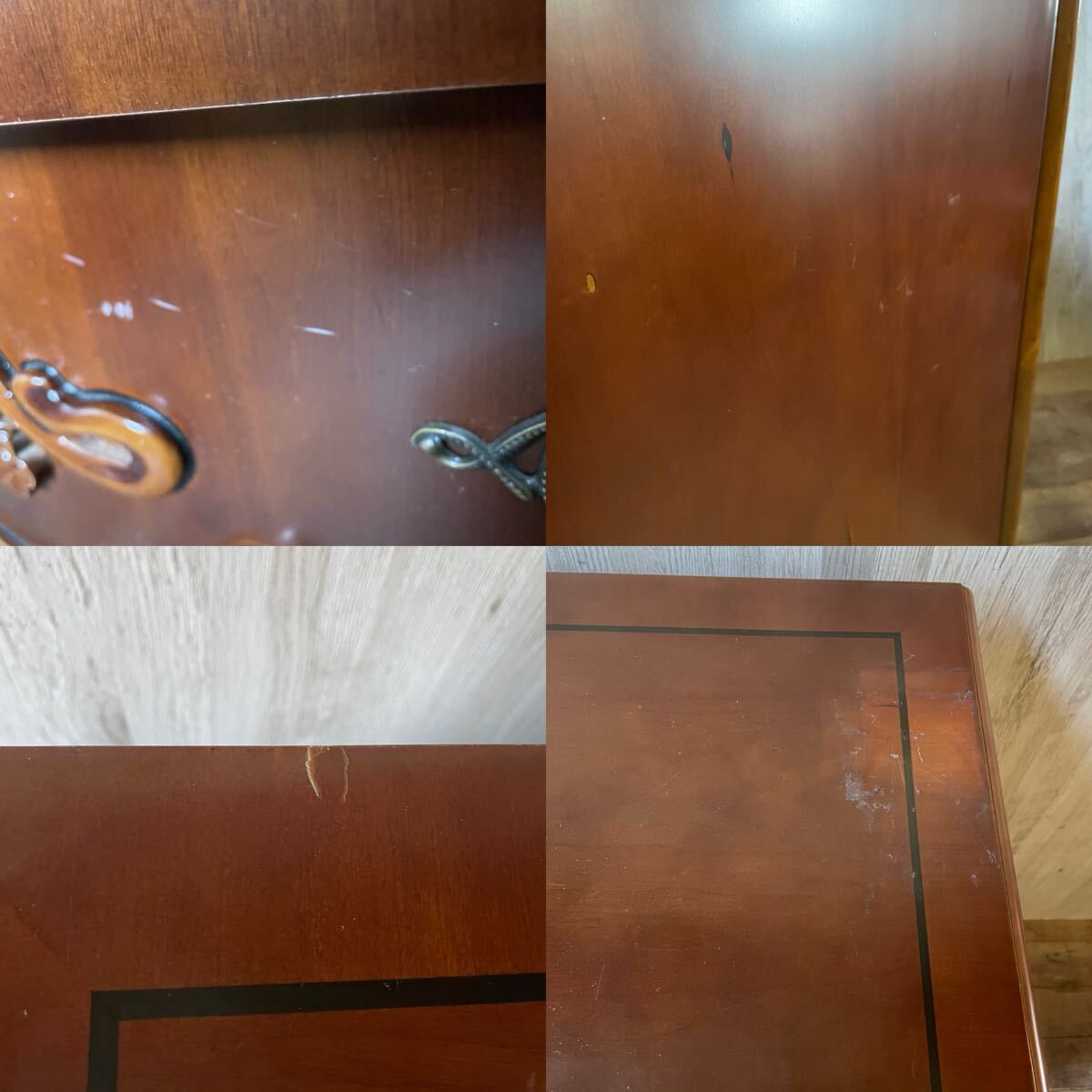 全体的に傷や擦れが数ヶ所あり、天板には落としきれていない汚れ等があります。
