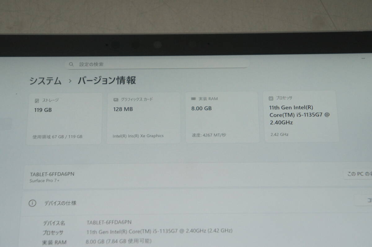 | 中古 Win11 Pro 第11世代 Microsoft Surface Pro 7+ 1N9-00013 12.3 2736×1824 /i5 1135G7/8GB/SSD128GB (5) | |