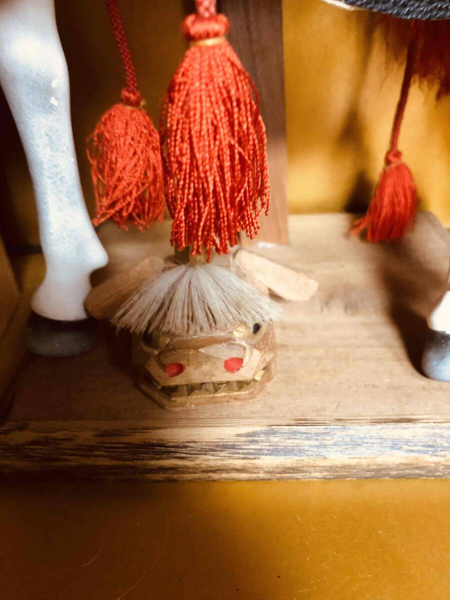 追加の人形について: ケース内に、獅子舞の頭が追加されています。本来の五月飾りの部品ではありませんが、そのままお譲りします。