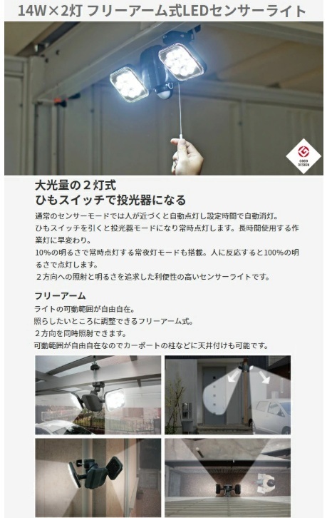 14Wx2灯フリーアーム式LEDセンサーライト LED-AC2028 ライテックス