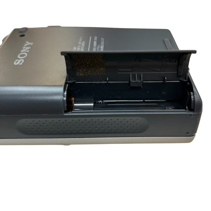 | 状態 | ジャンク品です。 通電はしますが、テープは回りません。 電池入れのスポンジが劣化してます。 | |