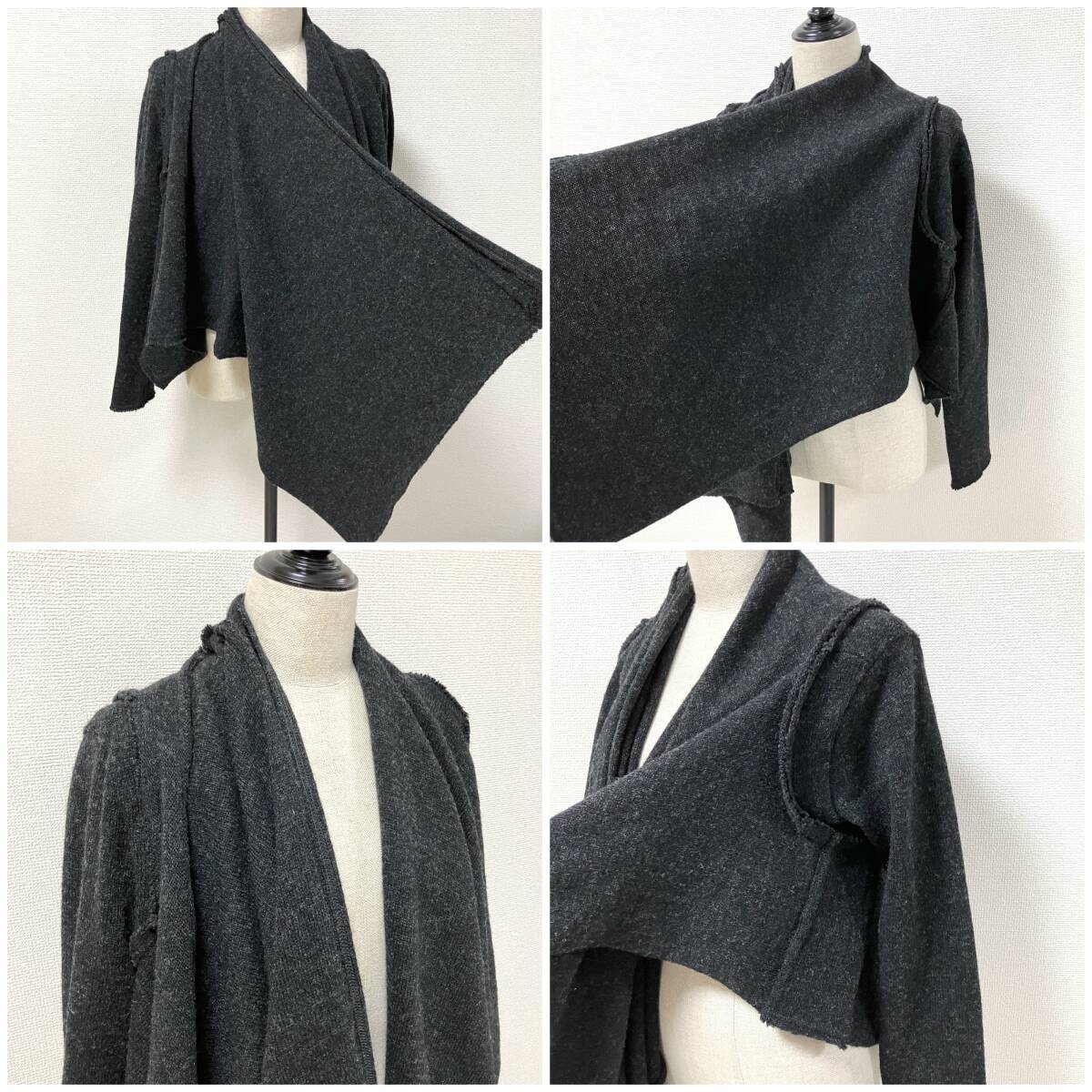 AD2003 COMME des GARCONS スクエア期 変形 ウール ニット カーディガン チャコールグレー