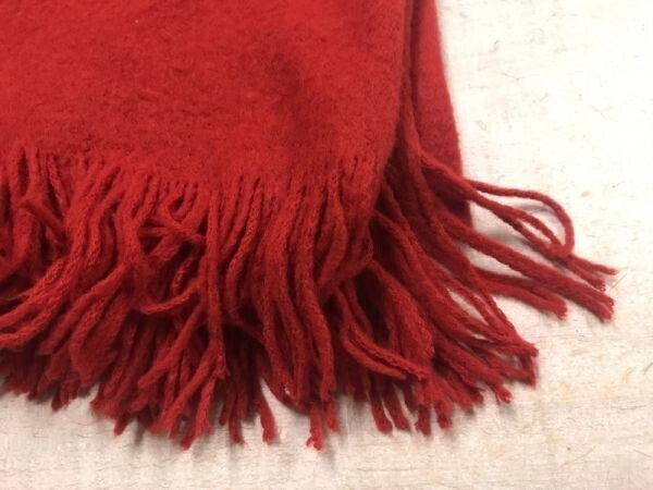 レトロ モード ストリート カントリー 古着小物 単色 無地 大判マフラー レディース フリンジ 赤 です。
