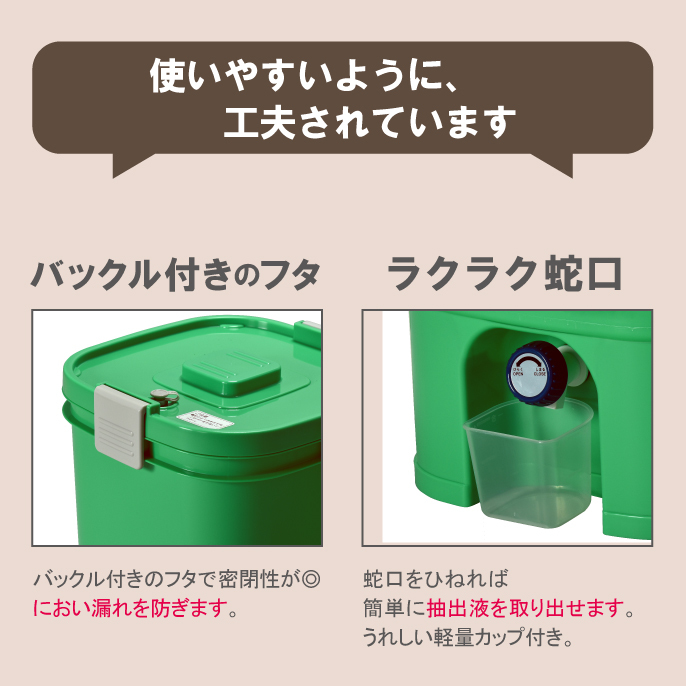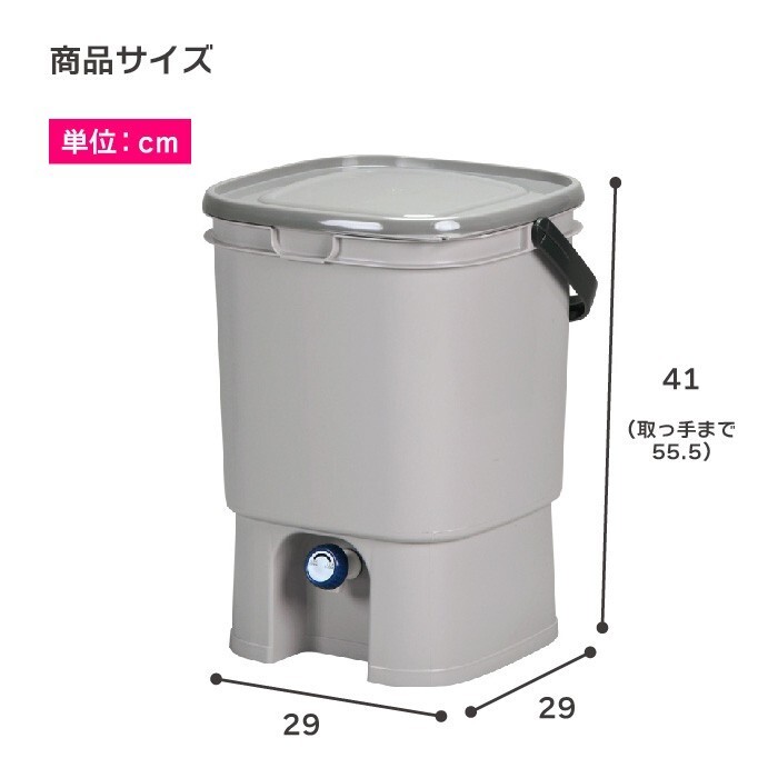 【商品サイズ】約幅29×奥行29×高さ41cm【商品重量】約1.25kg【材質】ポリプロピレン【容量】約19L【原産国】日本※ご購入後の注意点※蛇口の閉まりが悪いと感じた場合、押しながら回してください。※沖縄・離島、一部地域は別途送料がかかります。