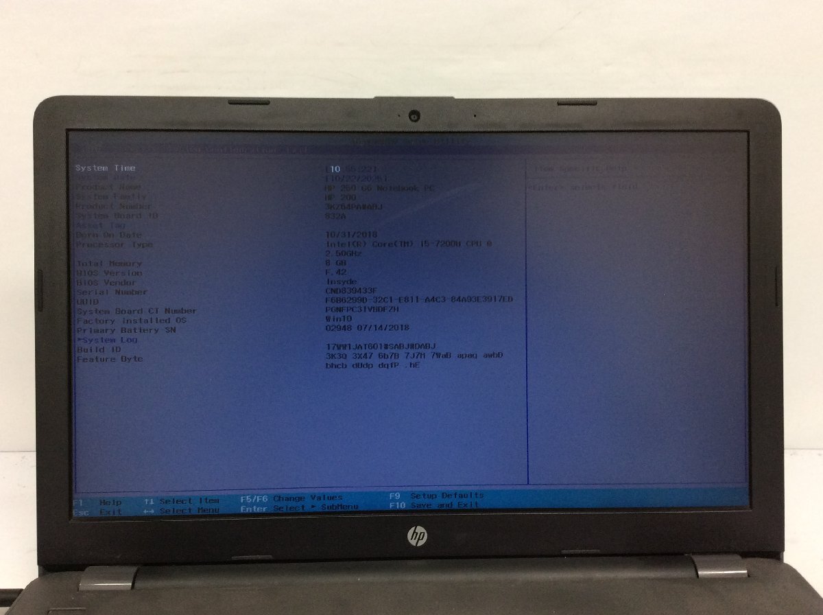ジャンク/ HP HP 250 G6 Notebook PC Intel Core i5-7200U メモリ8.19GB ストレージ無し 【K23377】