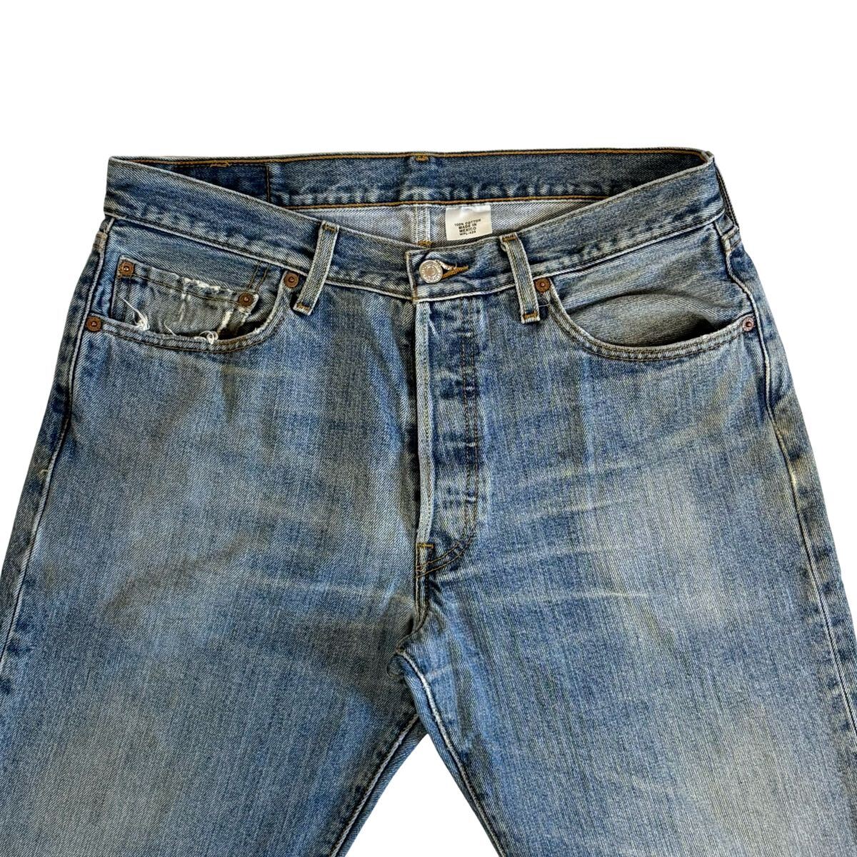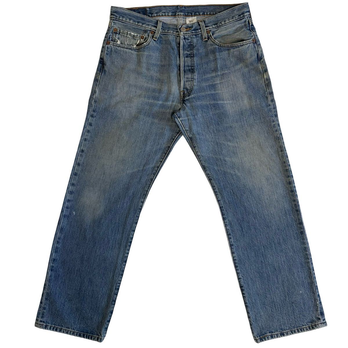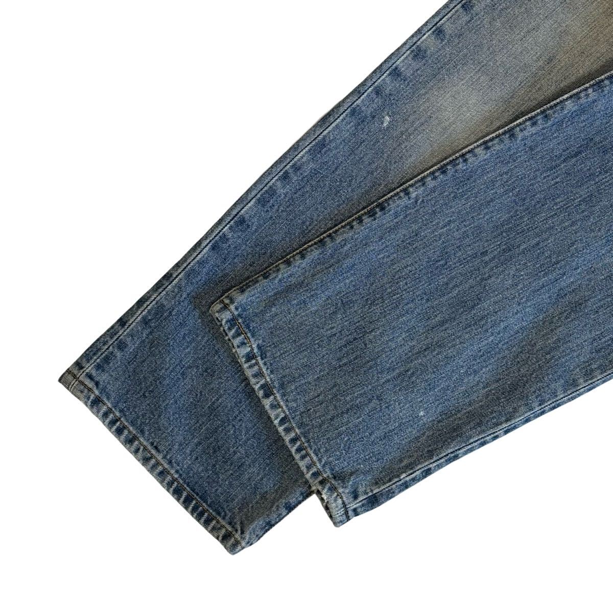※ フロント右膝あたり、右ポケットにダメージ、左ポケット下あたりに部分的な変色、後ろ右太ももあたりにダメージが有りますが、着用に問題はございません。