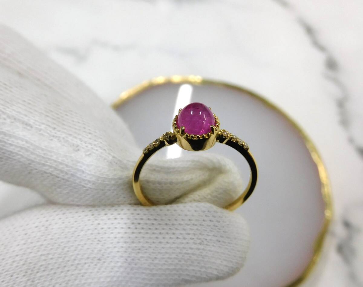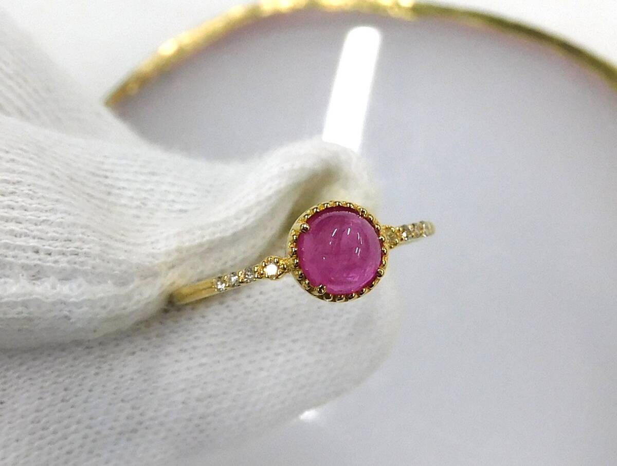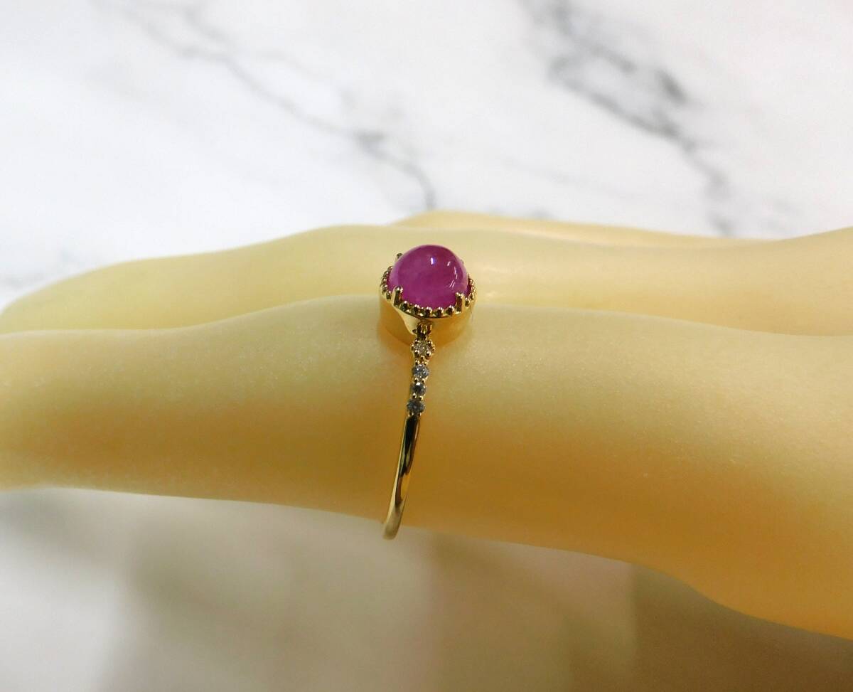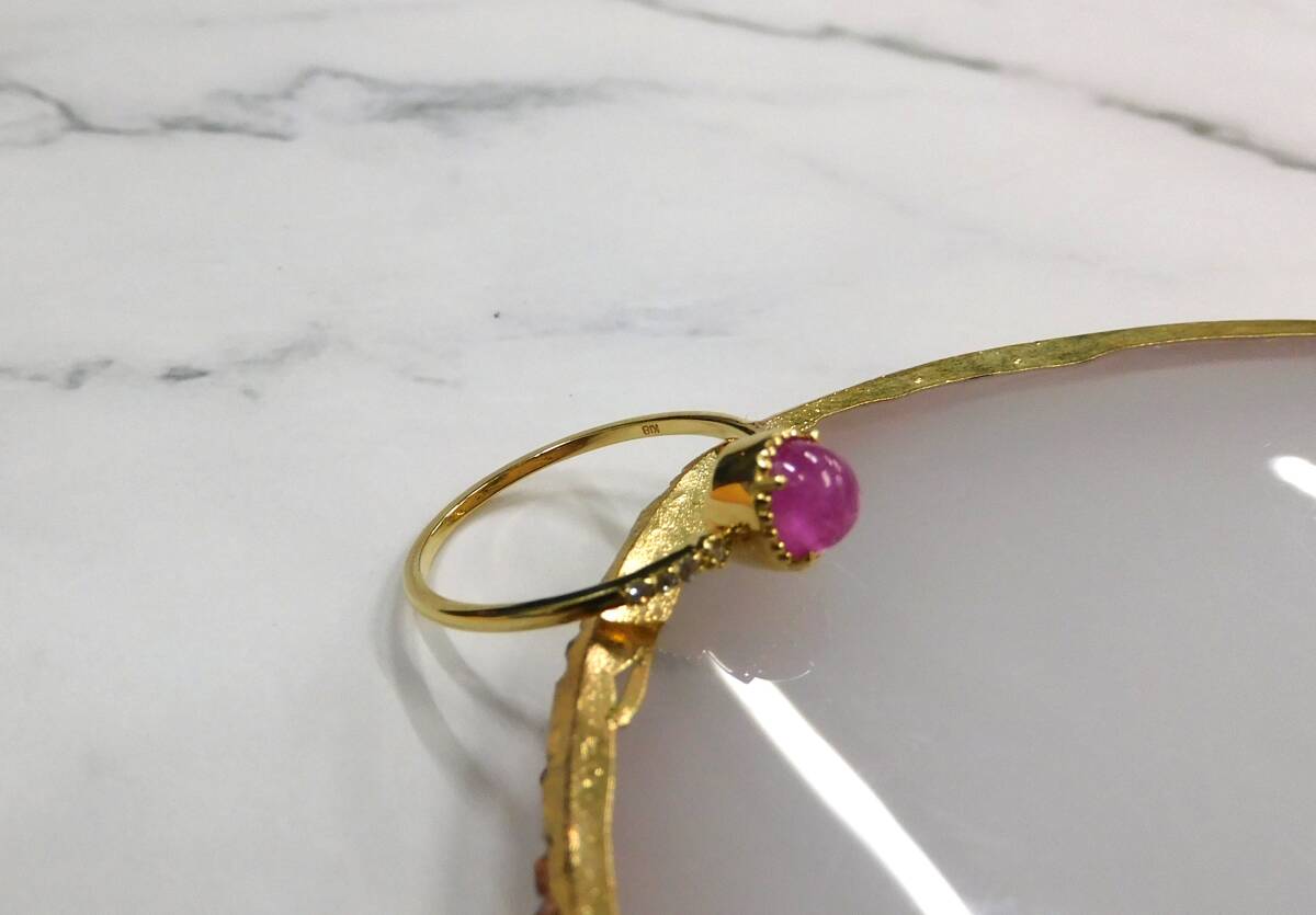 ふんわり滑らかさを感じる淡いピンクカラーのピンクスピネルを使用したK18ゴールドリング