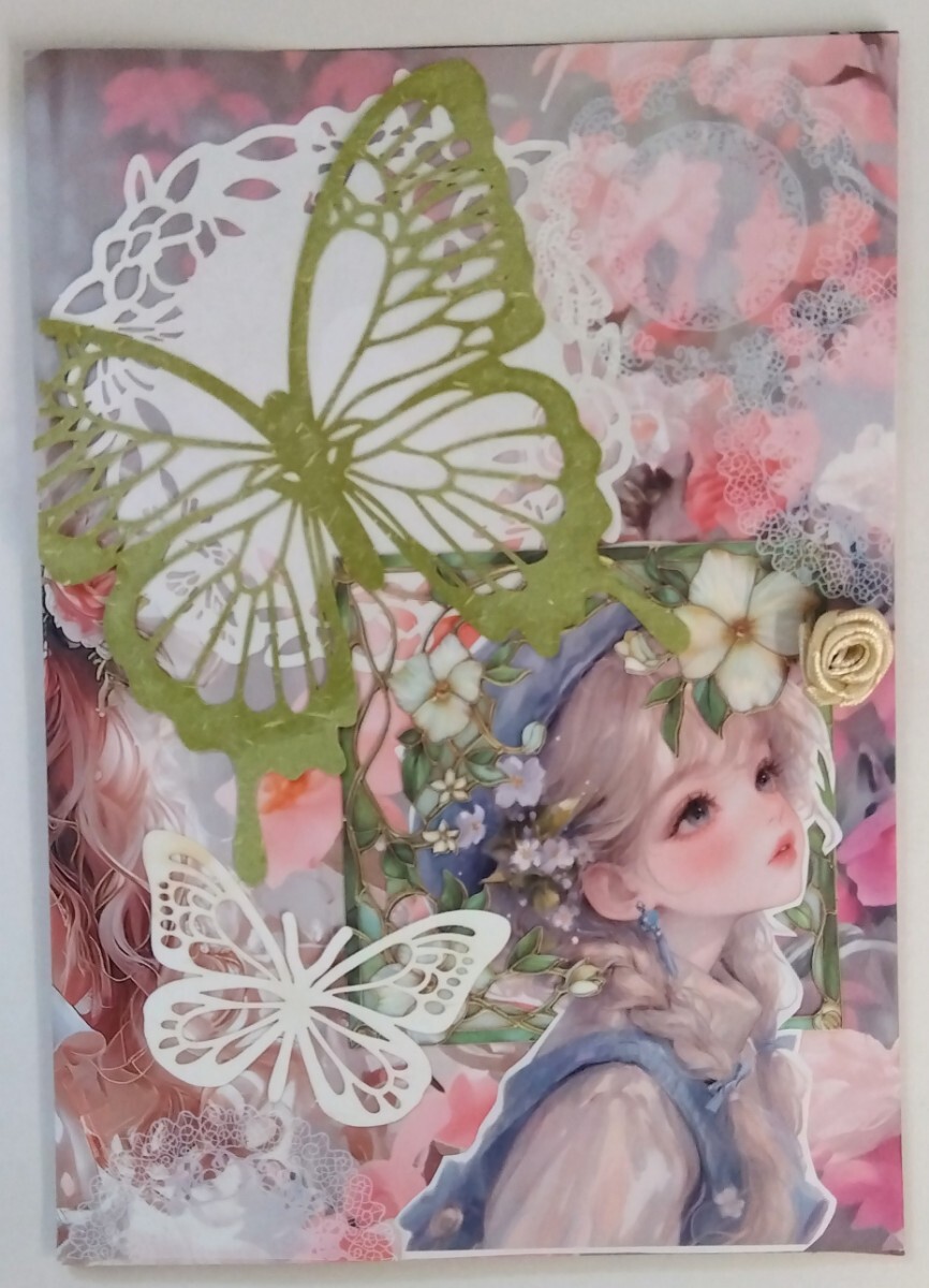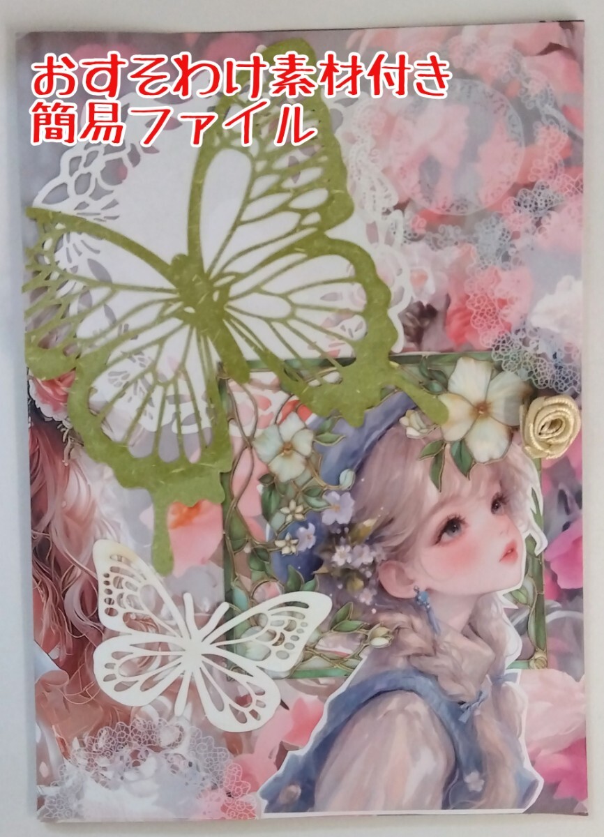 ・簡易ファイルはマグネットの留め具付きでバラを装飾しました。サイズは約18×13㎝。大きさはばらつきがあります。素材の保管ファイルとしてお使い下さい。反対側と内側は素敵イラストなので楽しんで下さい(*´∀`)