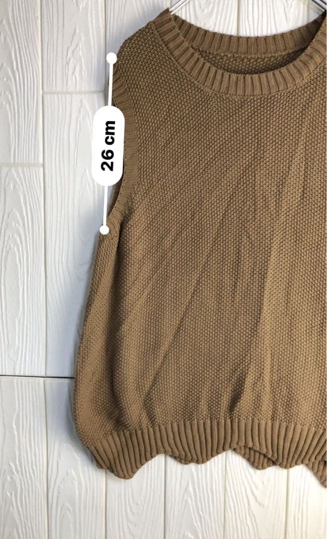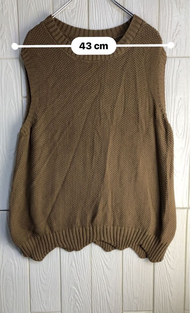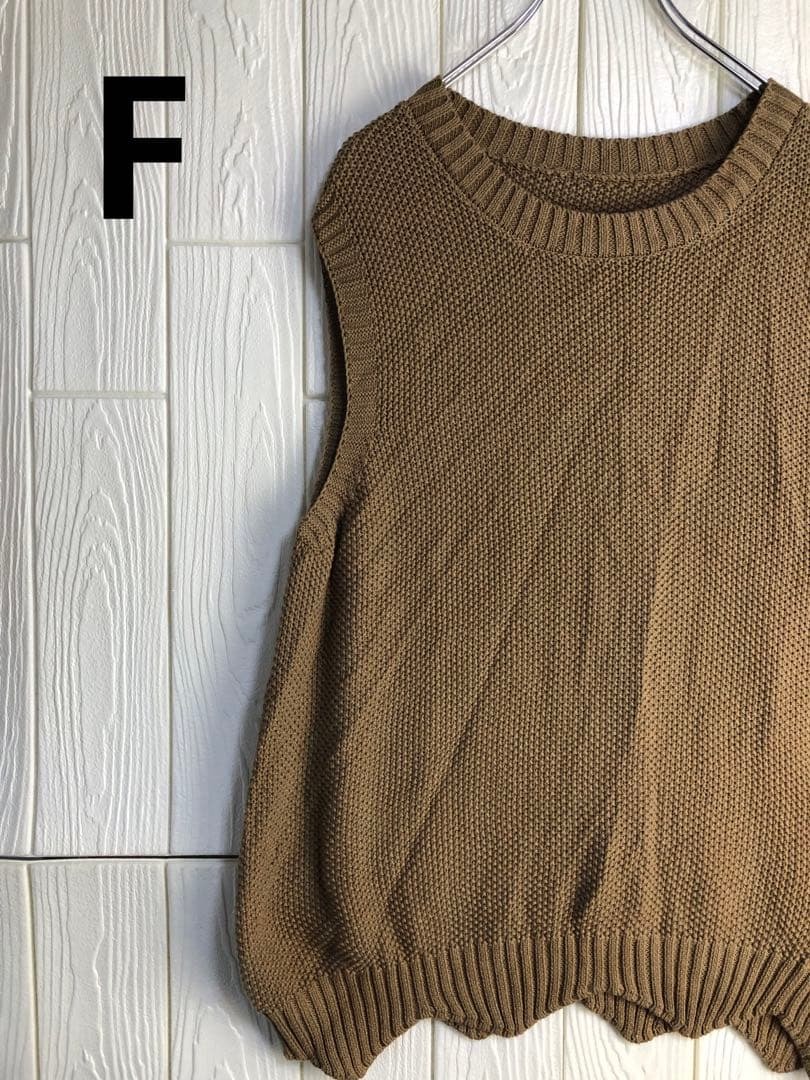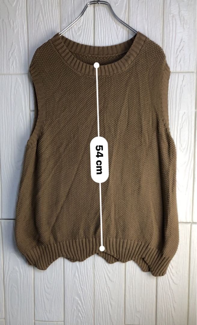 リブ編みの裾が特徴的なブラウンのノースリーブニットベスト。