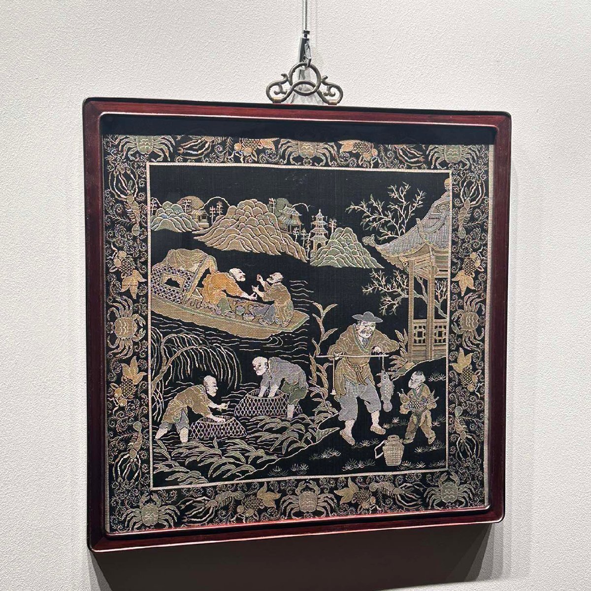 【安】中国清時代 織錦「漁樵耕読図」額装 掛屏 刺繍 古置物 古擺件 中国古美術 時代物 古董品 270 サイズ(約寸) |