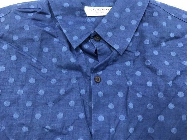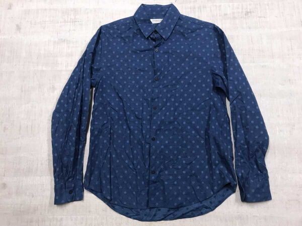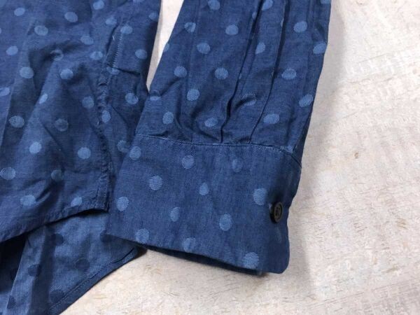 トゥモローランド TOMORROWLAND トラッド レトロ モード 古着 ドット 水玉 長袖ドレスシャツ メンズ 日本製 M 紺 です。