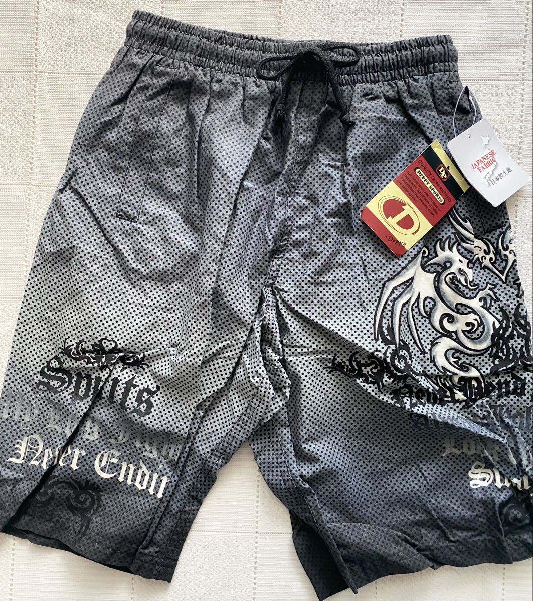 新品150 水着 日本製生地使用 インナーパンツ付き グレー ドット 男の子用 即決