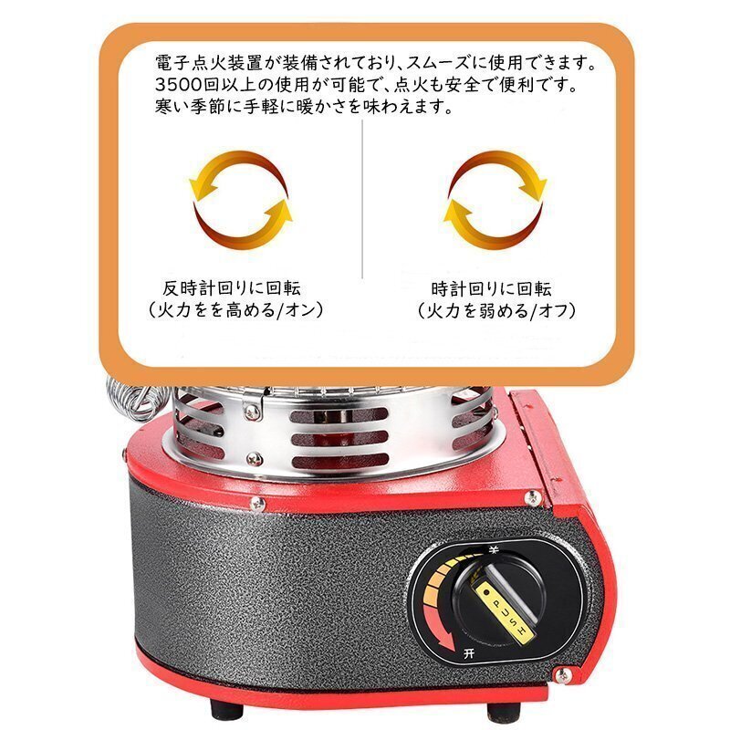【簡単に使用】ポータブルヒーターには電子点火装置が装備されており、スムーズに使用できます。3500回以上の使用が可能で、点火も安全で便利です。寒い季節に手軽に暖かさを味わえます。