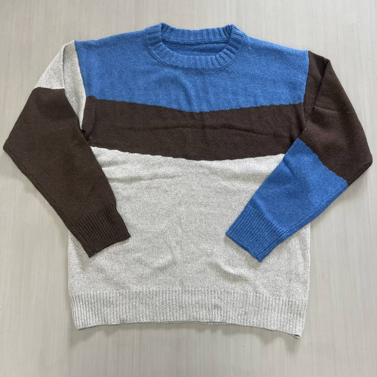 ◆新品未使用◆日本サイズM相当(タグXL)丈 63cmマルチカラー ニット セーター トップス ブラウンマルチ002295XL