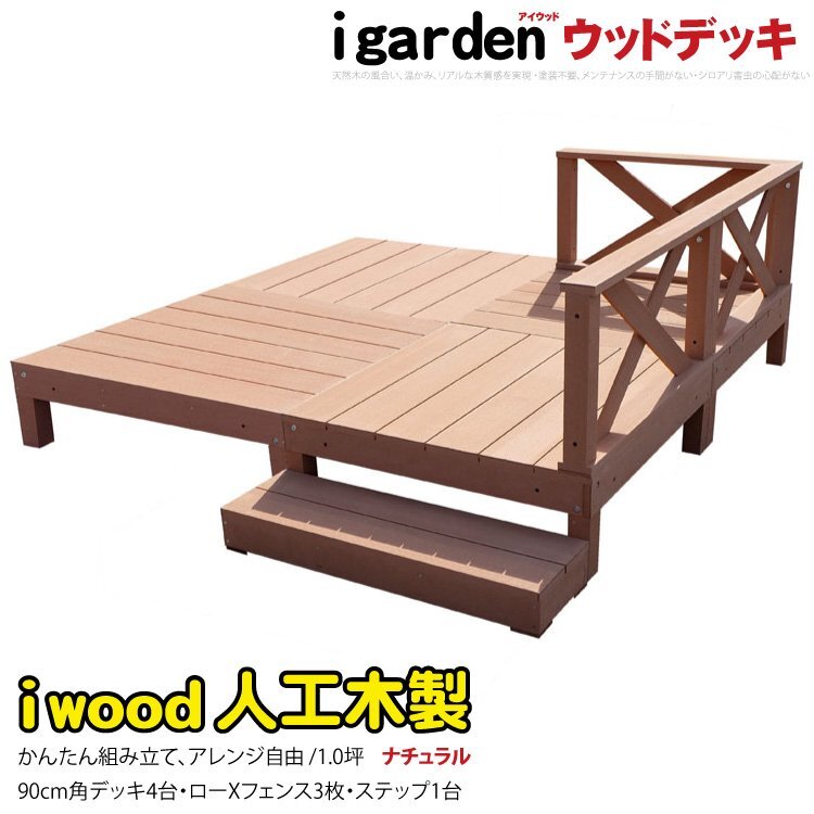 igarden アイウッドデッキ 8点セット(デッキ4・クロスローフェンス3・90ステップ1)1.0坪 ナチュラル 樹脂製 テラス DIY 庭 -4d3x1s