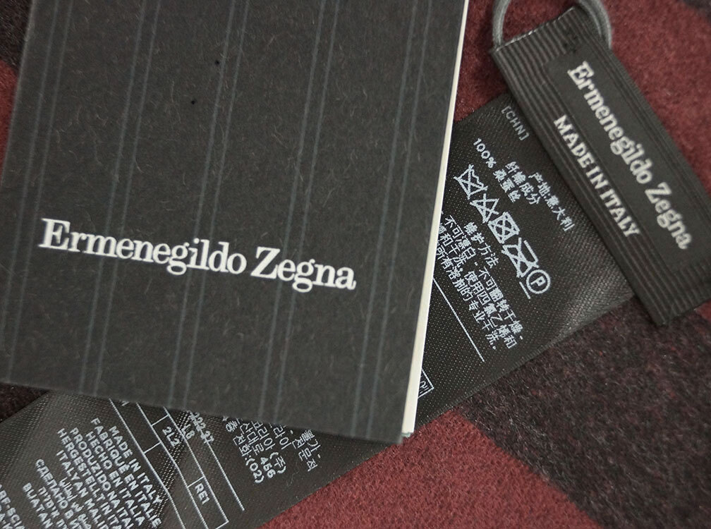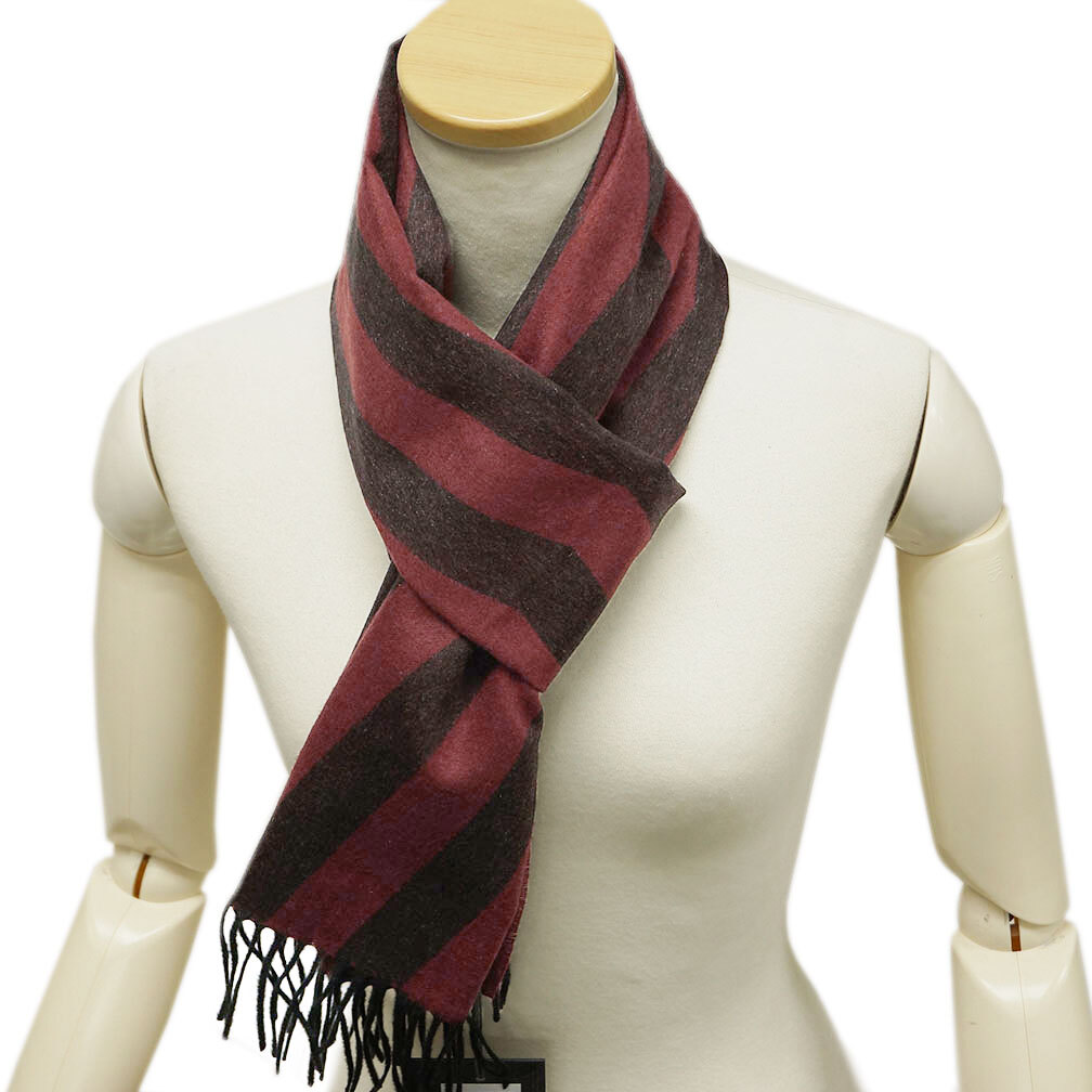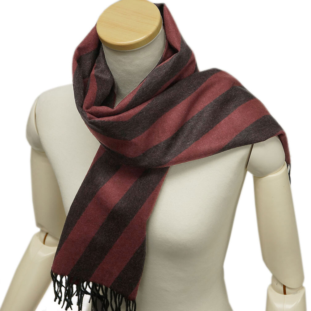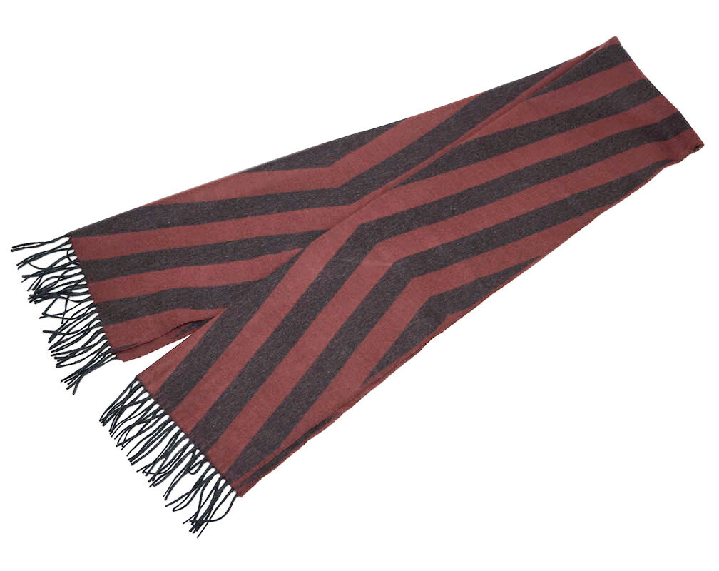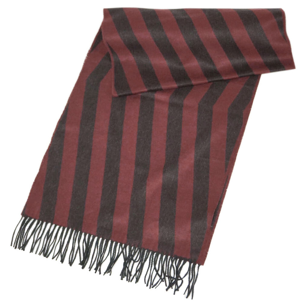 ●商品名: エルメネジルド・ゼニア フリンジマフラー ストライプ シルク100% ダークレッド/チャコールグレー