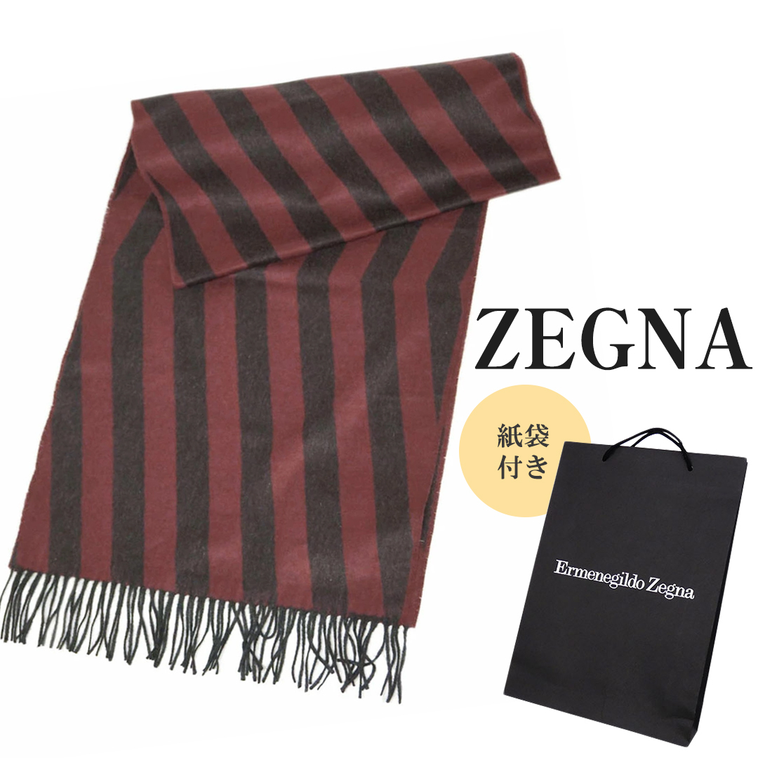 ゼニア マフラー Z2L15 エルメネジルド・ゼニア フリンジ デザイン ストライプ シルク 100% ダークレッド 赤 チャコールグレー 19121