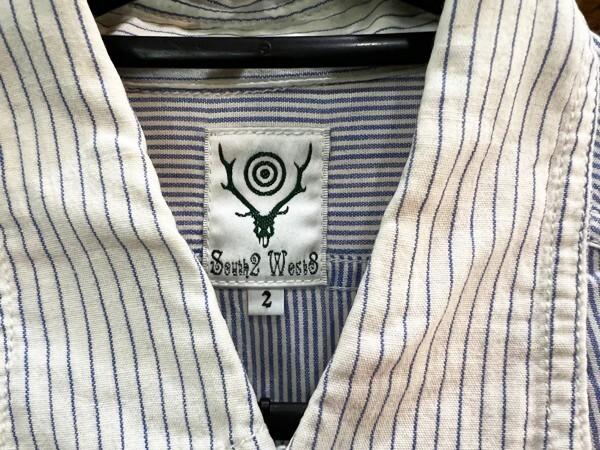 South2 West8 /サウスツーウエストエイト S2W8 リネン混ストライプ切替シャツ メンズ 長袖シャツ サイズ2