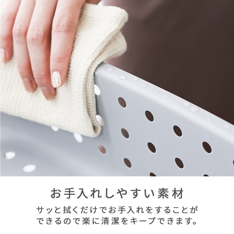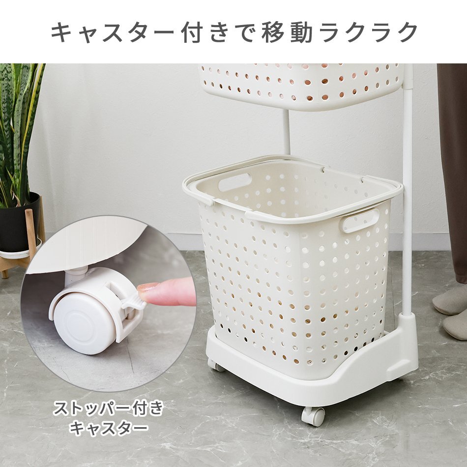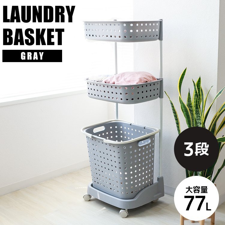ナチュラルカラーのおしゃれなランドリーバスケットです♪ サニタリースペースをすっきり出来ます。 上段の浅バスケットにはバス用品、洗濯機まわりの小物が収納できます。 入浴時の着替えや脱衣カゴとしても重宝します。 下段のバスケットは大容量の深型タイプ!洗濯物干し場までの移動に便利なハンドル付き。 移動に便利なキャスター付きです。 【商品仕様】 ・カラー:グレー ・サイズ:(約)幅42×奥行32×高さ102cm(キャスター取り付け時) ・重量:(約)2.5kg ・耐荷重:上段(約)20kg/中段(約)20kg/下段(約)50kg ・材質:ポリプロピレン、スチール 【注意事項】 ・商品は、モニターによって色合いが異なって見える場合があります。 ・仕様・デザインは改良のため予告なく変更することがあります。 |
