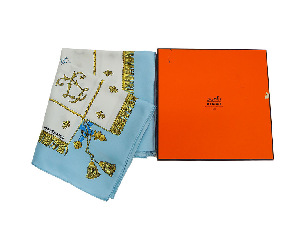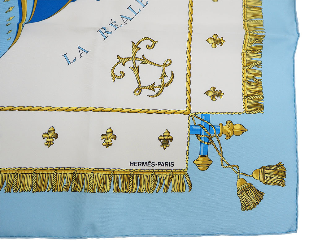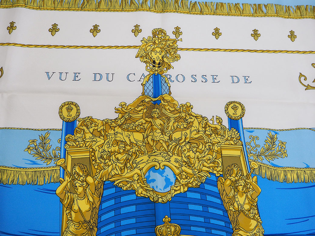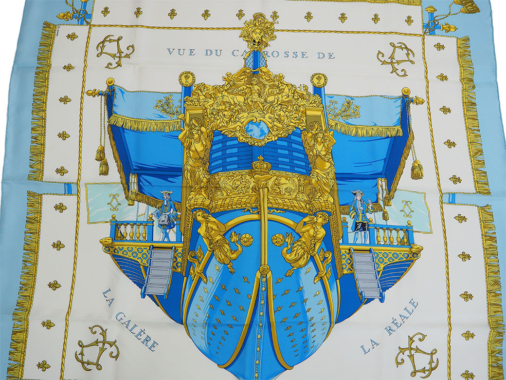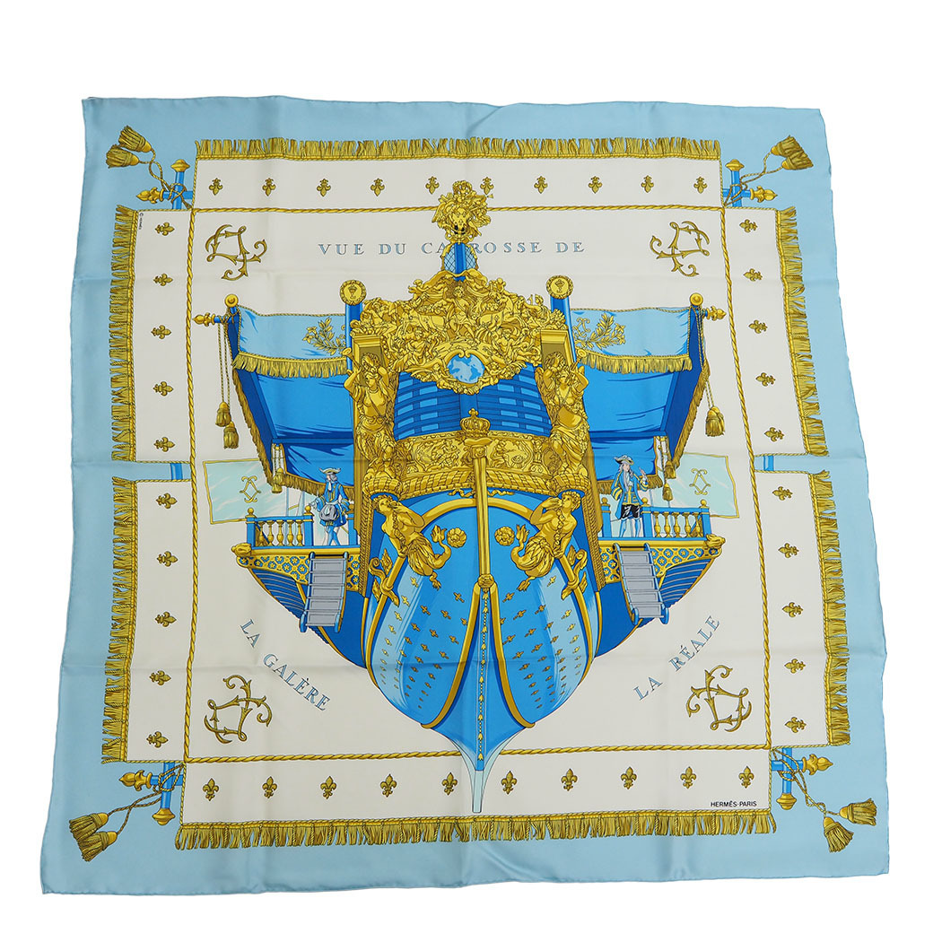 ■ エルメス カレ90 VUE DU CAROSSE DE LA GALERE LA REALE クイーンの戴冠式 船 スカーフ 水色 レディース シルク 正方形 HERMES【中古】【ランクA】 |