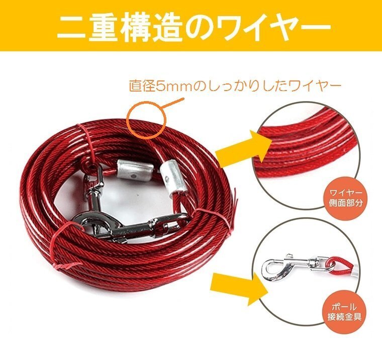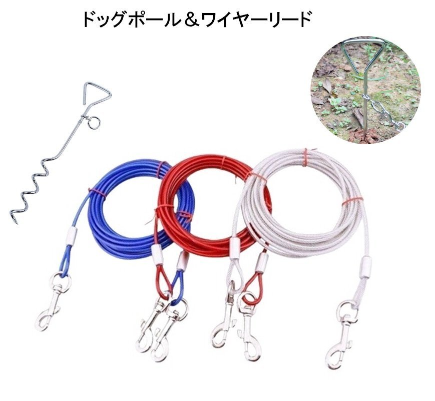 | ドッグポール ワイヤーリードセット 【ホワイト×3m】 埋め込み 係留ステッキ ドッグアンカー ドッグフック LB-288 | |||||||||||
