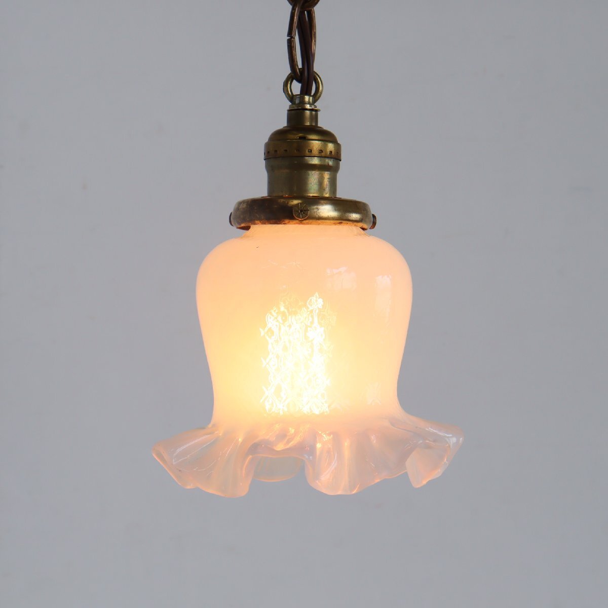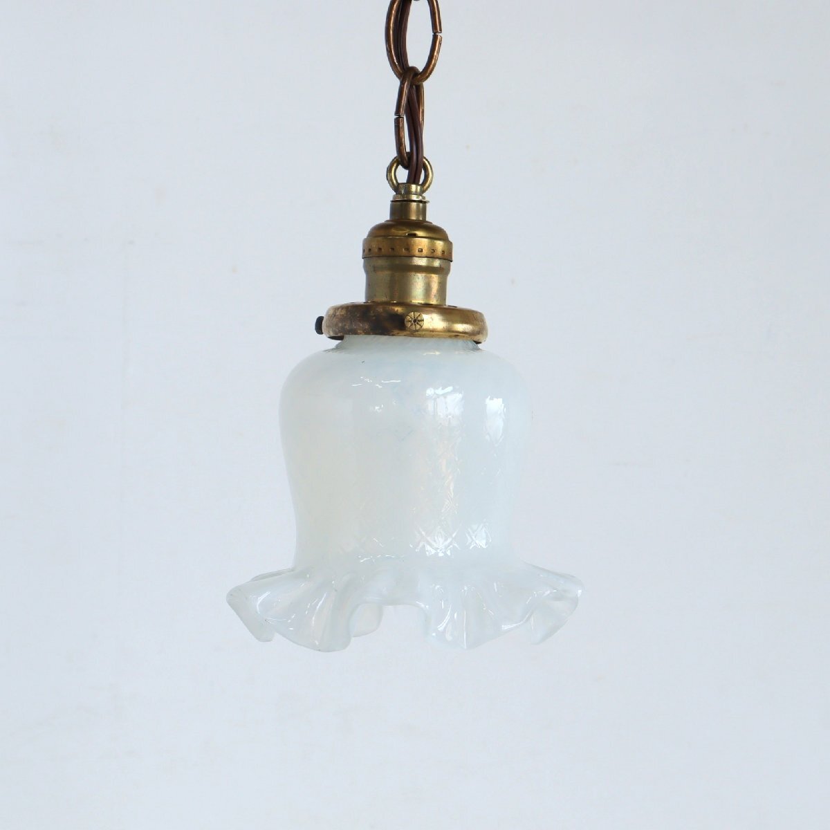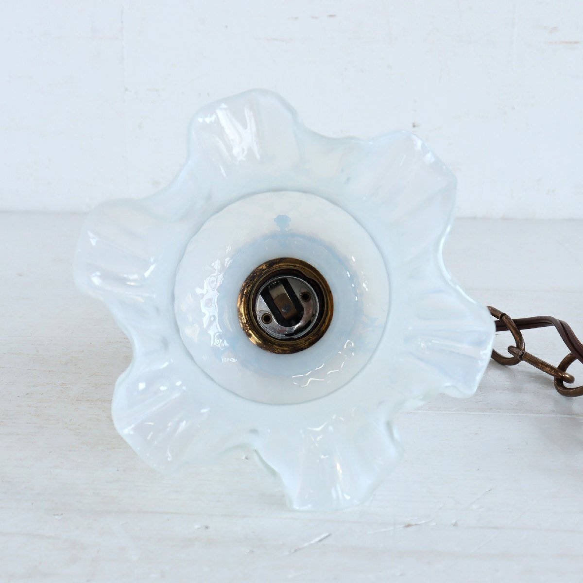 | 商品説明 explanation | 推定1920年代から30年代頃のヴィンテージのオパールガラスペンダントランプです。 フリル型のオパールのようなシェードがとても魅力的で、消灯時も空間のインテリアになります。 優しく温かみのある光が優しく空間を灯してくれます。 ご家庭のインテリア、カフェや店舗什器にいかがでしょうか。 |