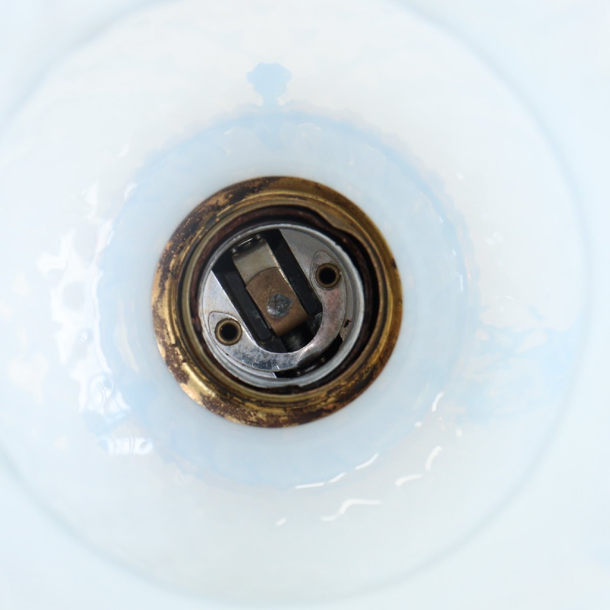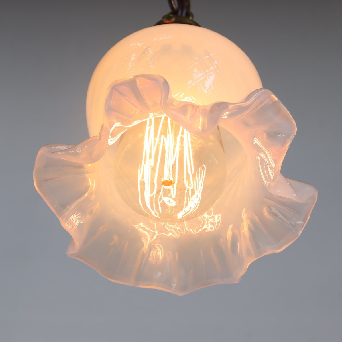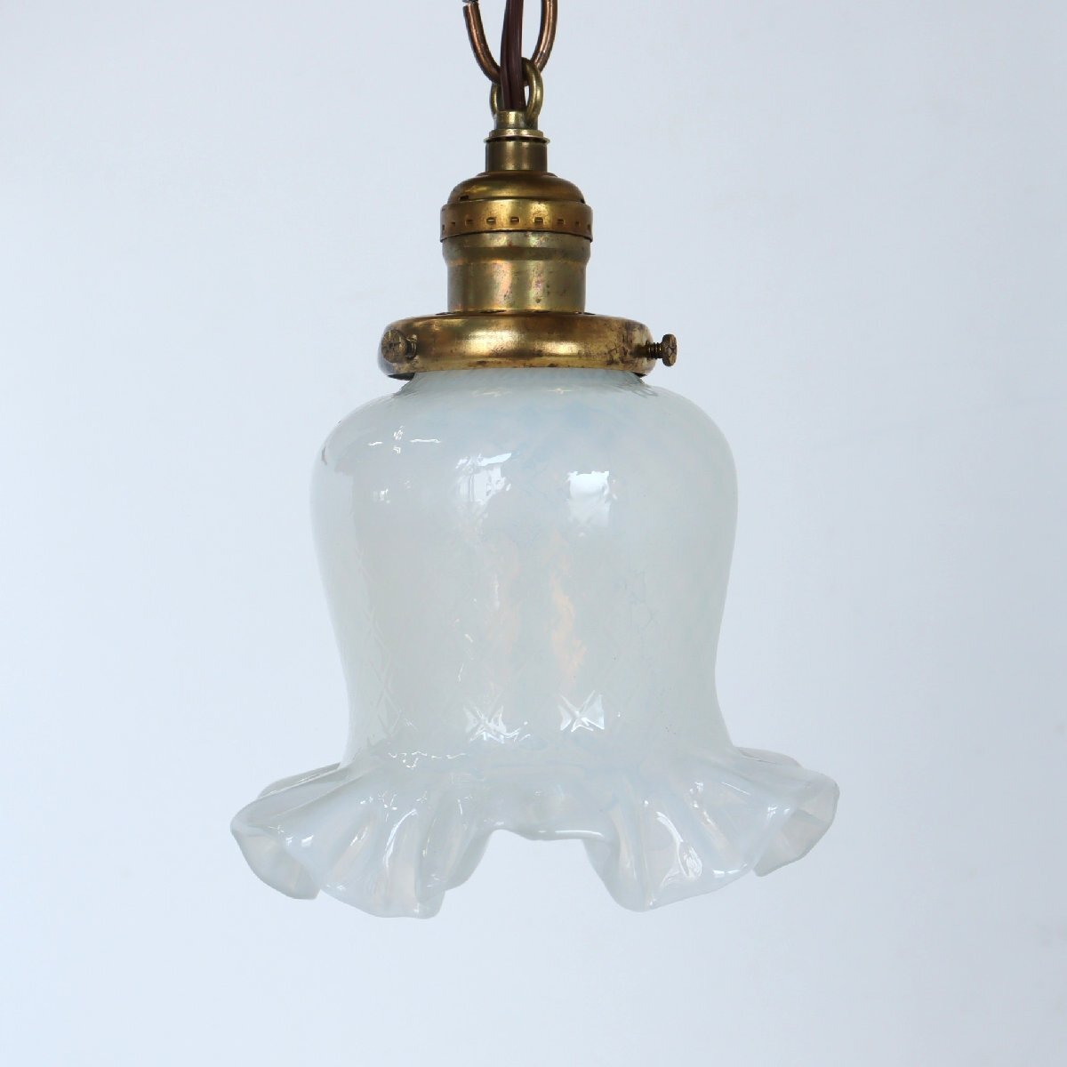 | 商品説明 explanation | 推定1920年代から30年代頃のヴィンテージのオパールガラスペンダントランプです。 フリル型のオパールのようなシェードがとても魅力的で、消灯時も空間のインテリアになります。 優しく温かみのある光が優しく空間を灯してくれます。 ご家庭のインテリア、カフェや店舗什器にいかがでしょうか。 |