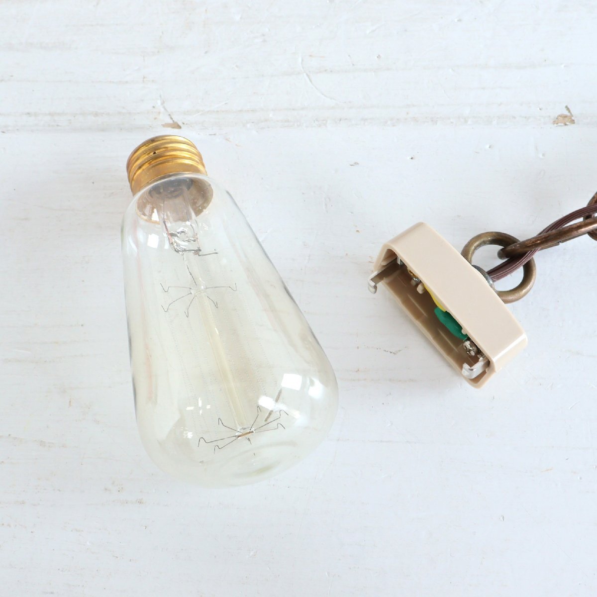 | サイズ size | 全体の高さ約19.5cm シェード直径約14.5cm コード 約151cm チェーン約146cm 市販のエジソン電球(口金E26)を使用しています。 市販されている電球(LEDを含む)も使用できます。 ※多少の誤差はご容赦ください。 ※コードとチェーンは無料で短くできます。ご要望欄にご希望の長さをご記入ください。 |