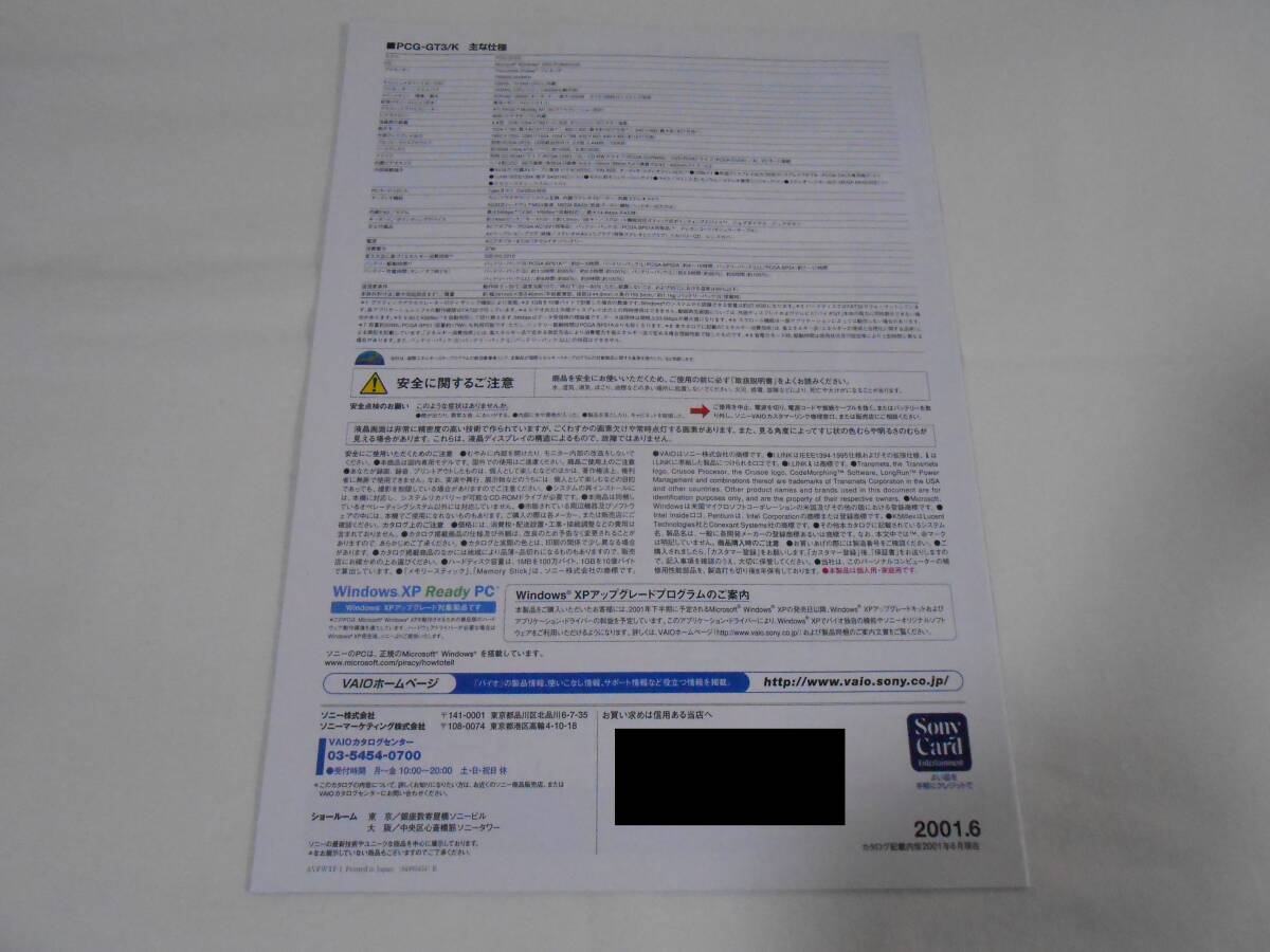 カタログ SONY vaio ソニー バイオ ノートブックコンピューター バイオGT PCG-GT3/K バイオノート 2001年6月