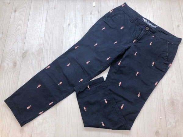 オールドネイビー Old Navy ギャップ GAP アンクル丈 タツノオトシゴ刺繍 総柄 ワーク チノ パンツ ボトムス レディース L 紺 です。
